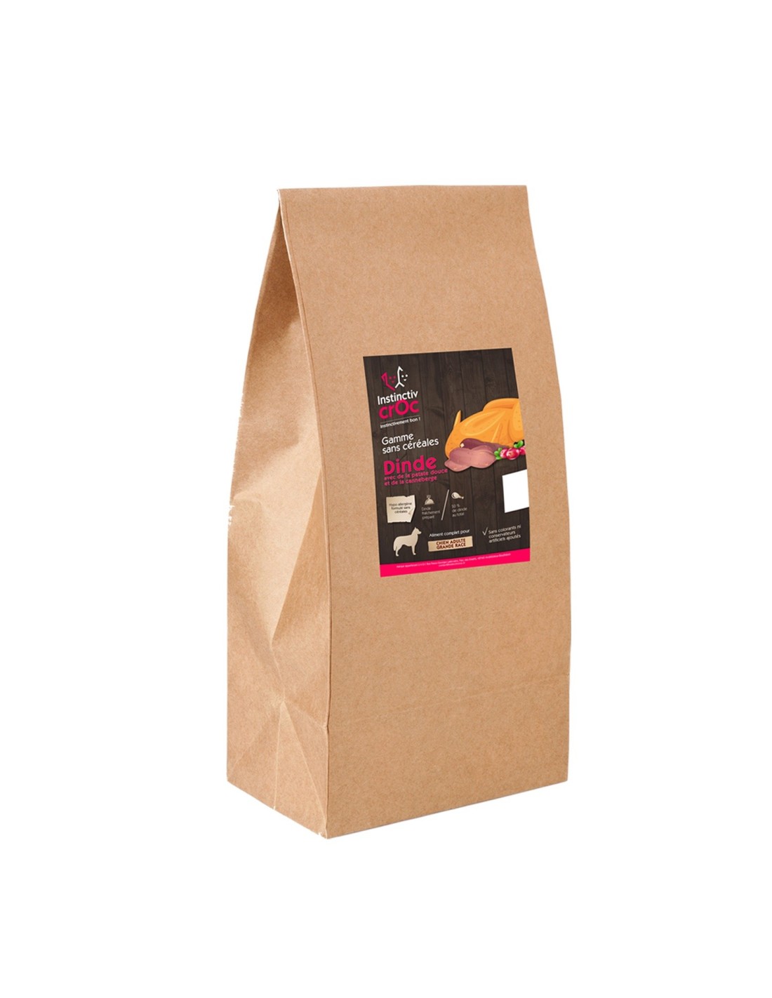 Croquettes sans céréales à la dinde pour chien de grande Race - INSTINCTIV CROC