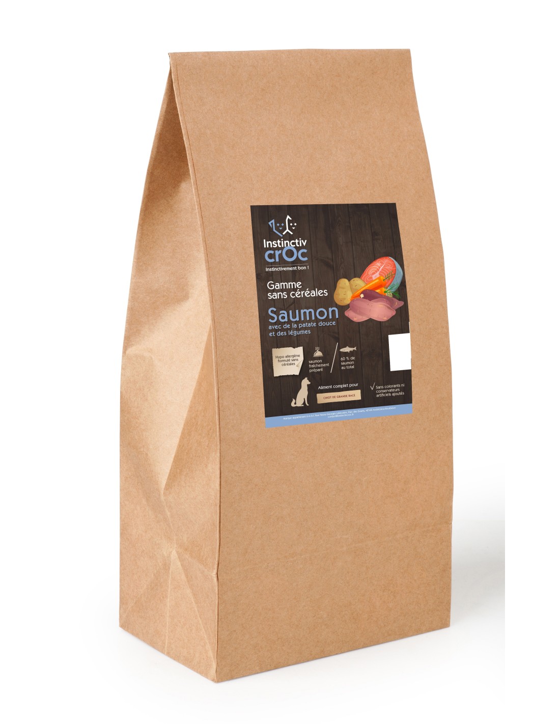 Croquettes sans céréales au saumon pour chiot de grande race - INSTINCTIV CROC