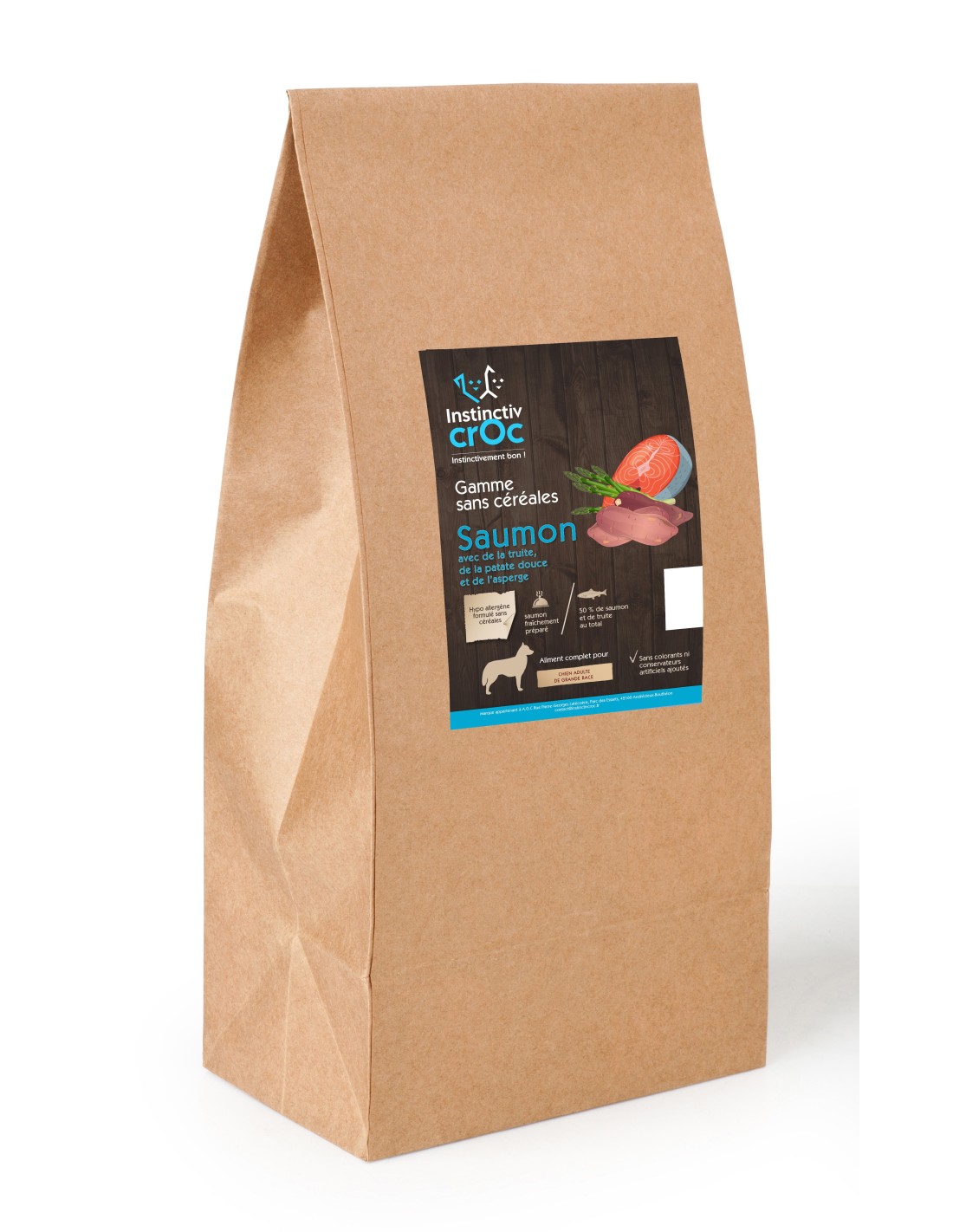 Croquettes sans céréales au saumon pour chien de grande Race - INSTINCTIV CROC