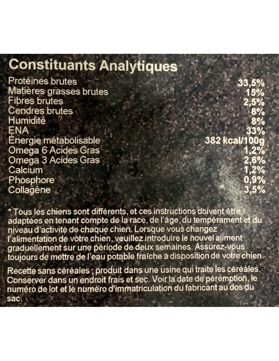 • Protéines brutes 33,5%,