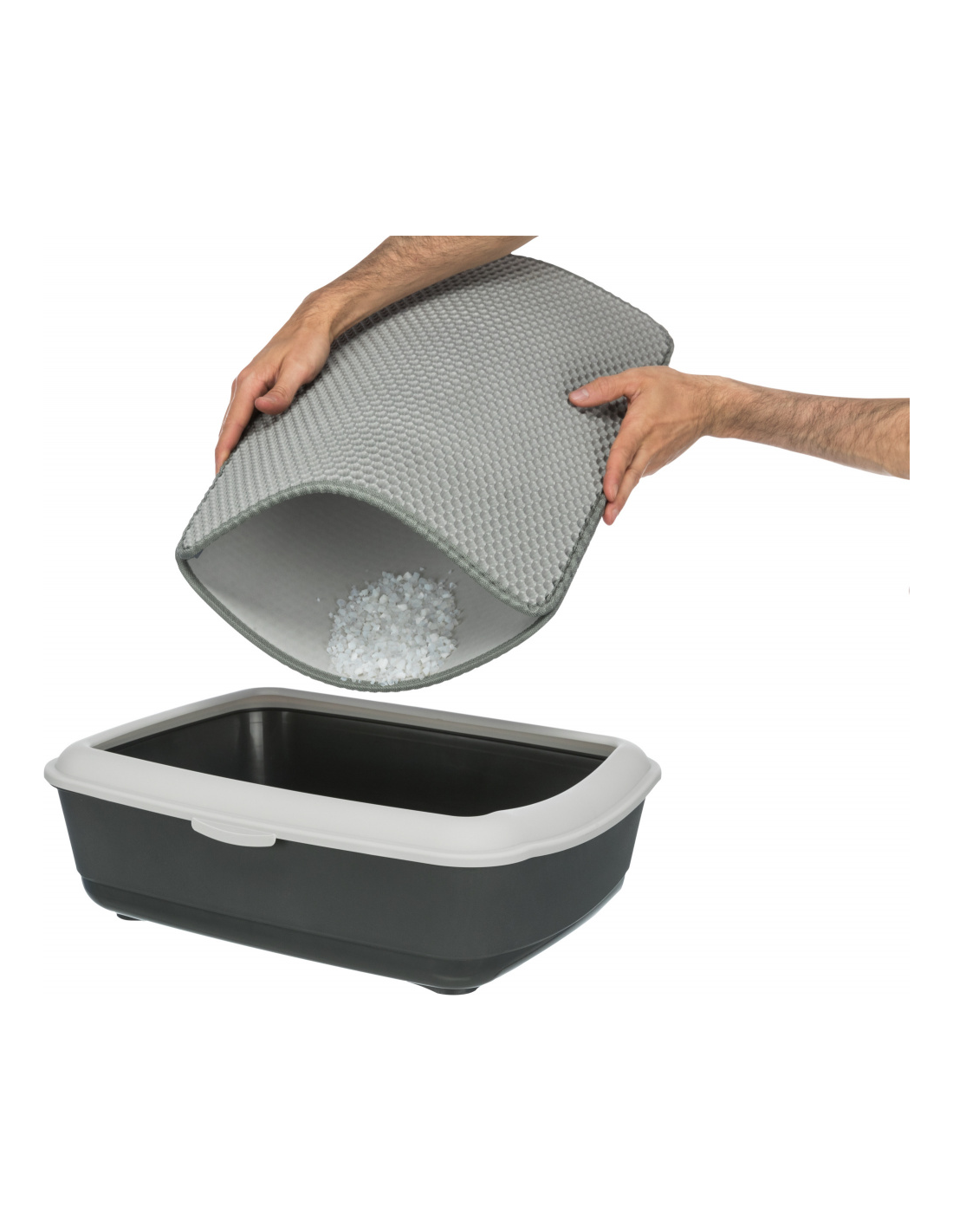 Le Tapis pour litière Tamis est fait pour lui ! Il retient et stocke la litière collée aux pattes de votre chat lorsqu'il sort de son bac ou de sa maison de toilette grâce à son revêtement alvéolaire. Très pratique et hygiénique, vous pouvez facilement récupérer la litière accumulée.