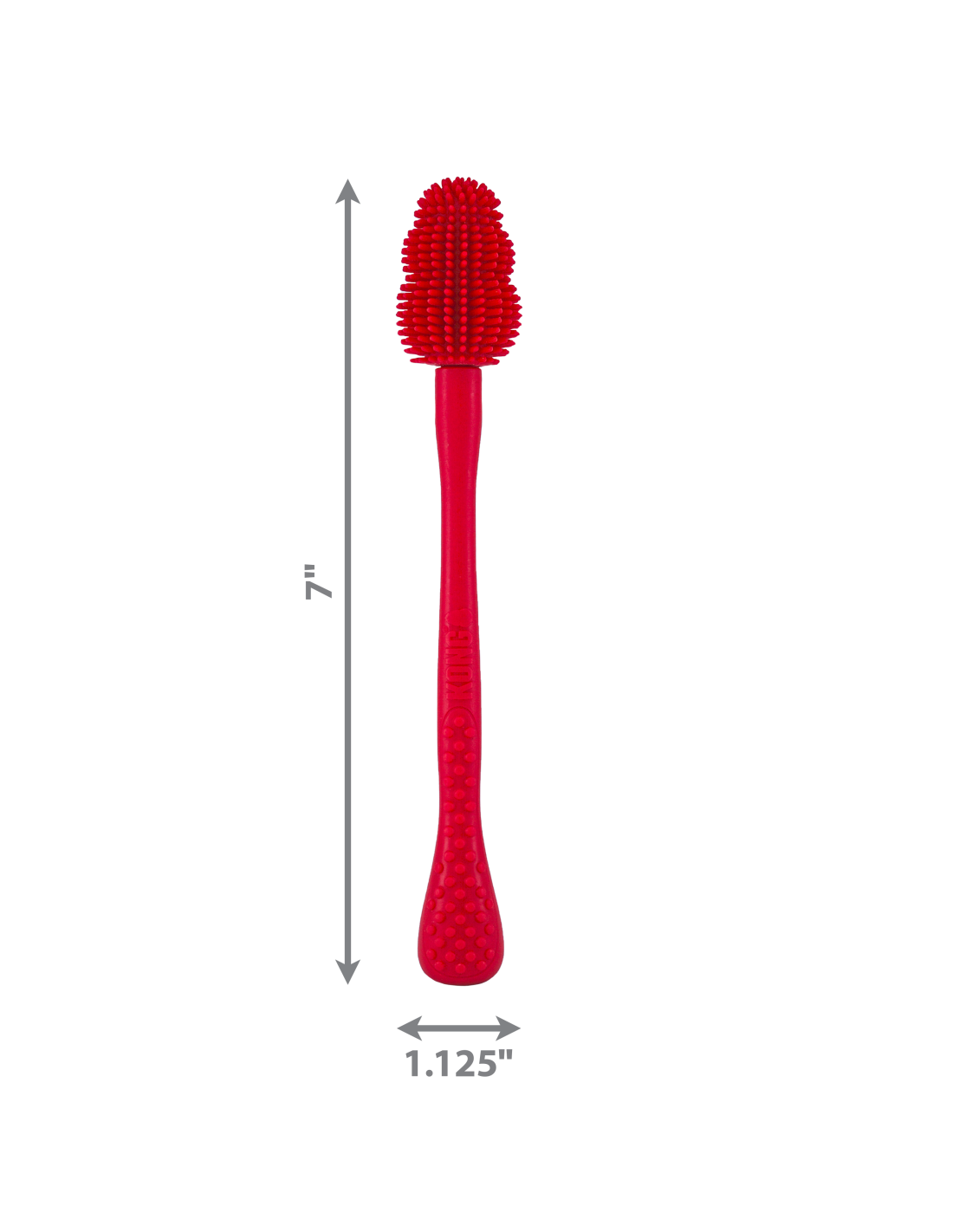 KONG Brush permet le nettoyage rapide des jouets KONG Classic, car même le chien le plus doué peut oublier quelques endroits. Insérez la brosse dans le jouet KONG, faites-la pivoter et frottez. Les soies spéciales et flexibles éliminent efficacement ce qui reste des friandises.