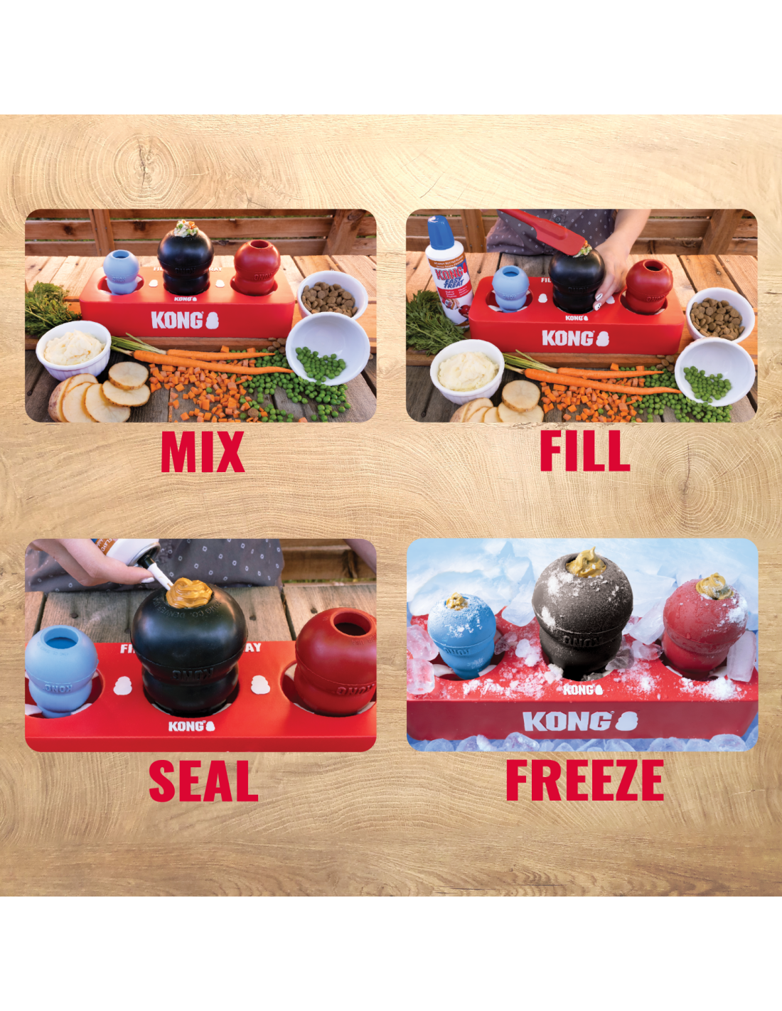 Station de remplissage KONG Fill Or Freeze Tray pour jouets KONG Avec cette station de remplissage, vous pouvez remplir, refroidir et congeler jusqu'à 3 jouets KONG en même temps.