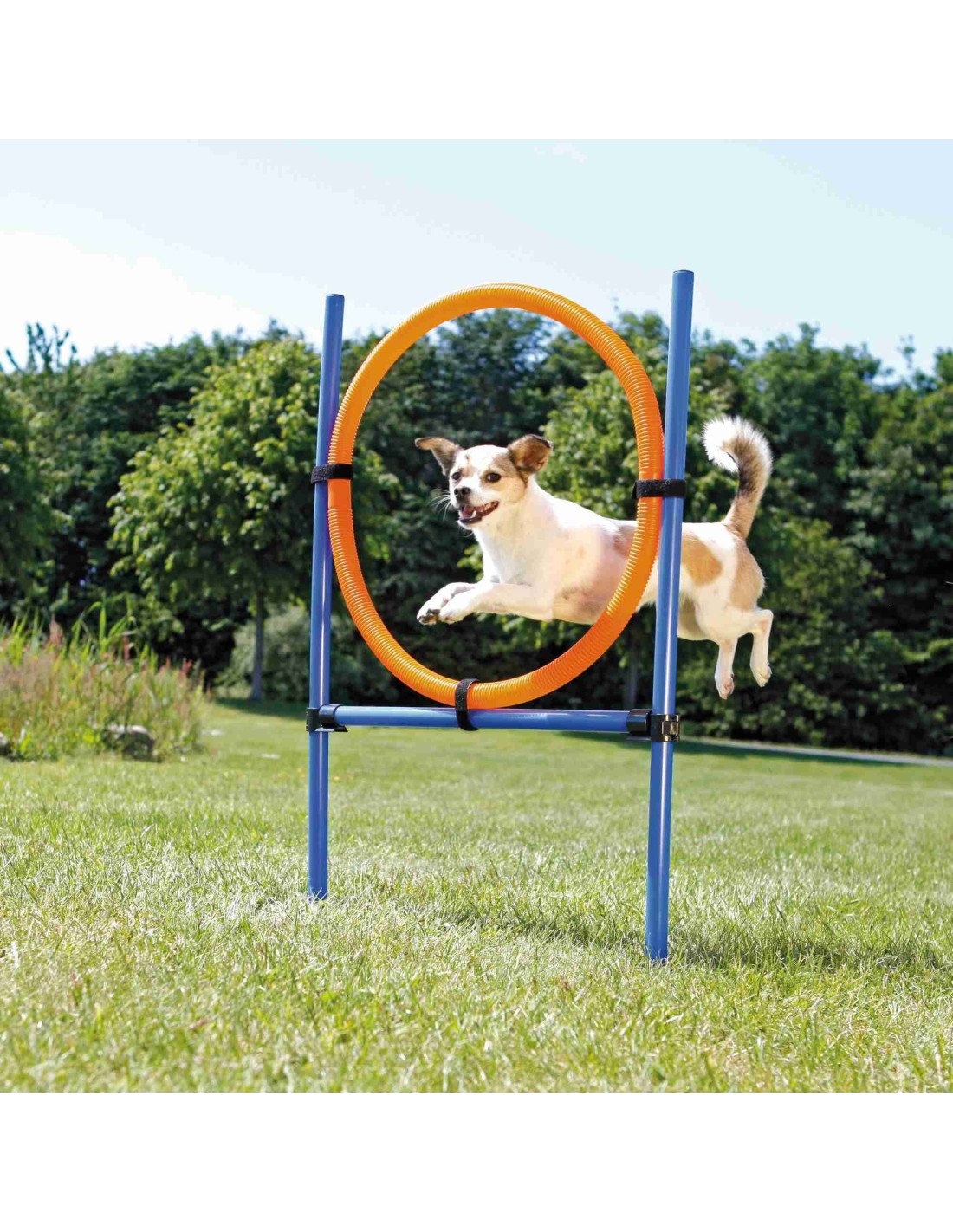 Un saut d'obstacle avec cerceau peu onéreux pour avoir une activité d'agility avec votre chien où vous le souhaitez.