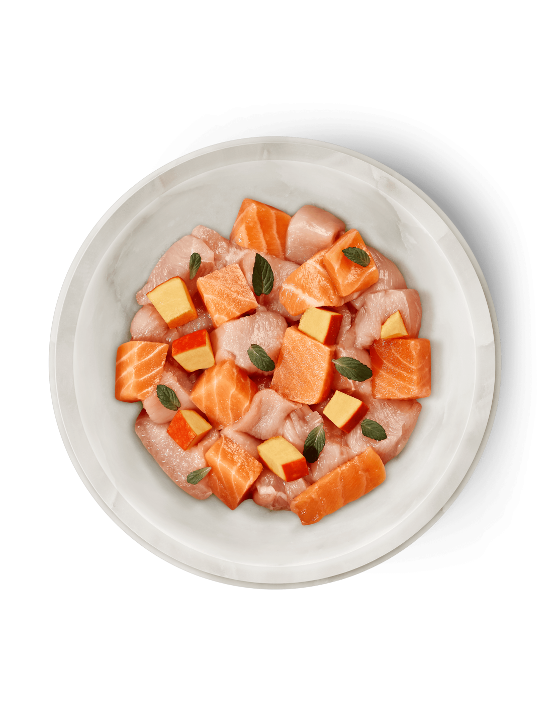 Composition: Filet de saumon (62 %), foie de poulet (15 %), viande musculaire de poulet (8 %), peau de poulet (6 %), courge musquée (4 %), tomate en poudre, herbe-aux-chats* *Sèches
