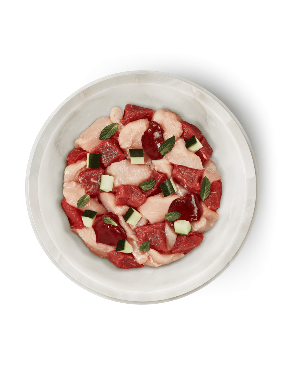 Composition: Cœur d’agneau (43 %), gésier de poulet (16 %), viande musculaire de poulet (11 %), foie de poulet (10 %), peau de poulet (10 %), courgette (4 %), tomate en poudre, huile de colza, herbe-aux-chats*, minéraux *Sèches
