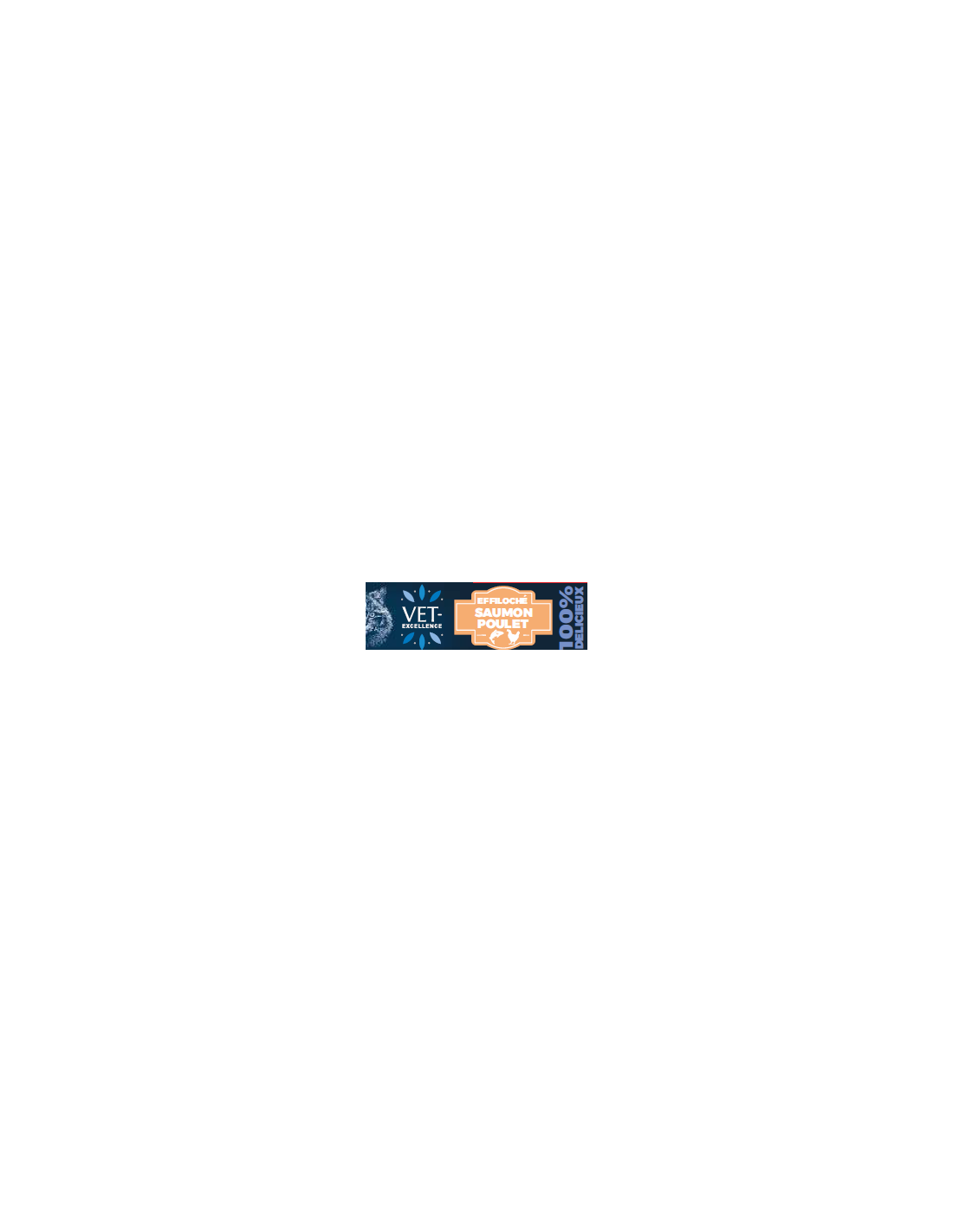 COMPOSITION DANS L'ORDRE : Poisson blanc 30 %, saumon 20 %, poulet 20 %, bouillon de viande 29 %, huile de saumon, vitamines et minéraux.