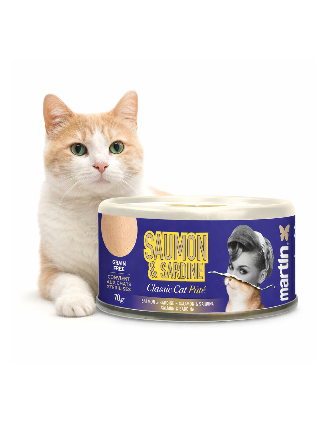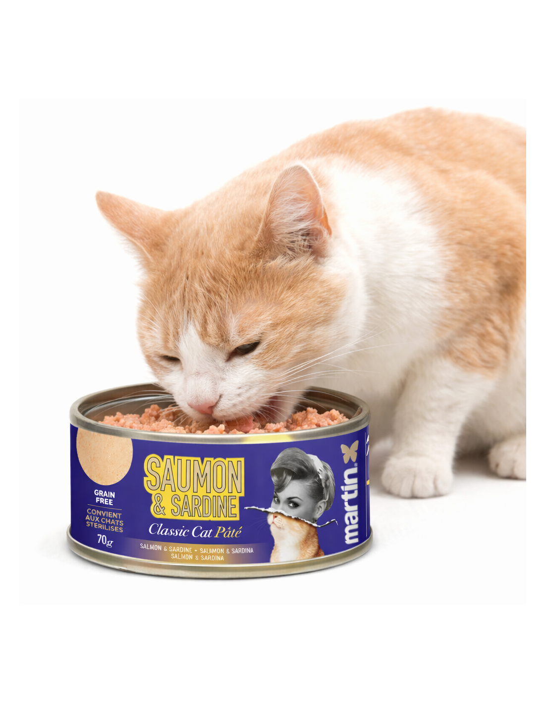 Offrez à votre chat un repas savoureux et équilibré avec Classic Cat Pâtée Saumon Sardine, une recette gourmande élaborée par la marque Martin Sellier. Cette pâtée onctueuse associe saumon et sardine pour offrir une alimentation complète et adaptée à tous les chats, qu’ils soient chatons, adultes ou seniors, y compris les chats stérilisés.