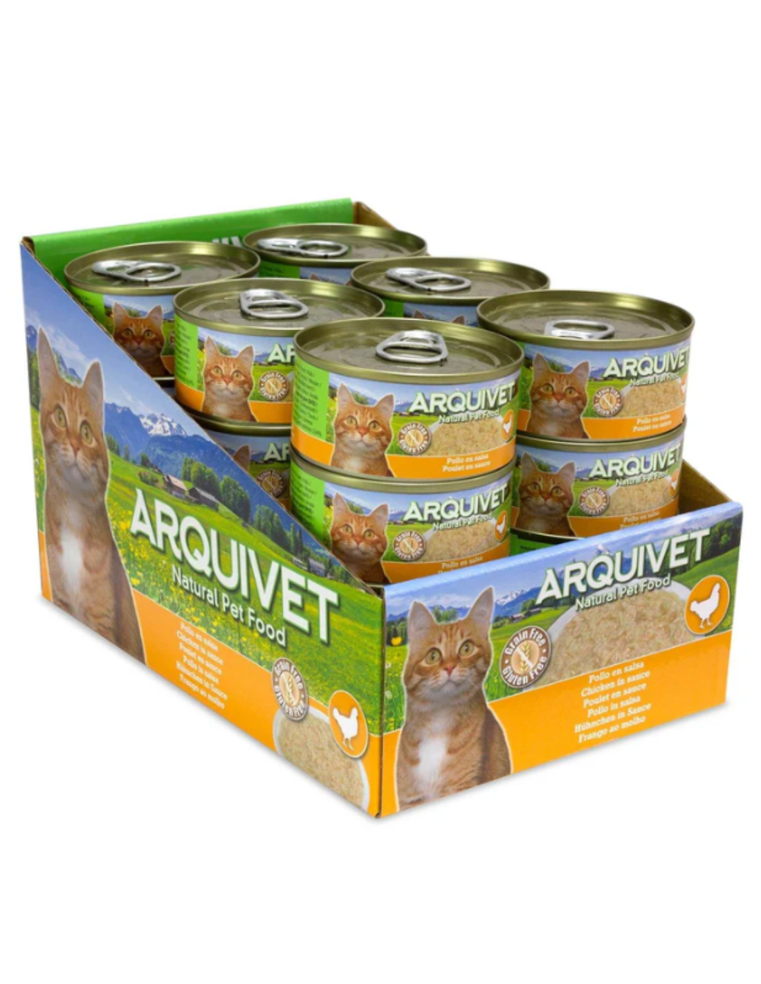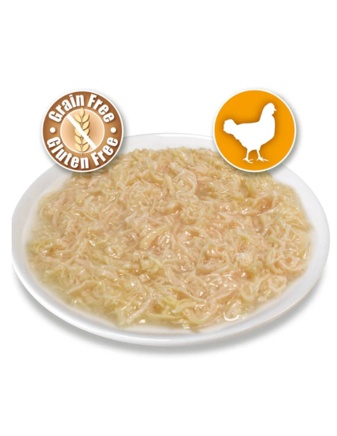 Mini filets de poulet en sauce pour chats, composés à 70 % de poulet. Aliment complémentaire savoureux, riche en eau, idéal pour hydrater et varier l’alimentation quotidienne. À associer avec des croquettes ou une pâtée complète pour un repas équilibré.