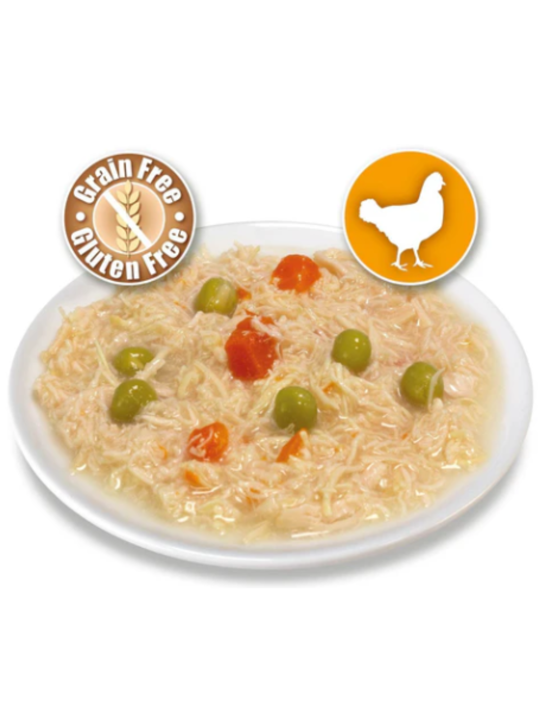 Offrez à votre chat une recette savoureuse associant le poulet à de délicieux légumes en sauce. Préparé avec 66 % de poulet, ainsi que des carottes et des petits pois, cet aliment complémentaire apporte variété et plaisir tout en contribuant à une bonne hydratation grâce à sa forte teneur en eau.