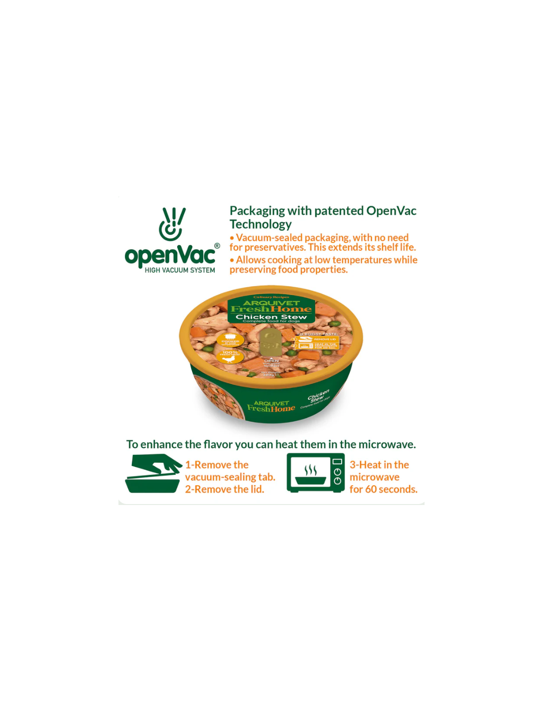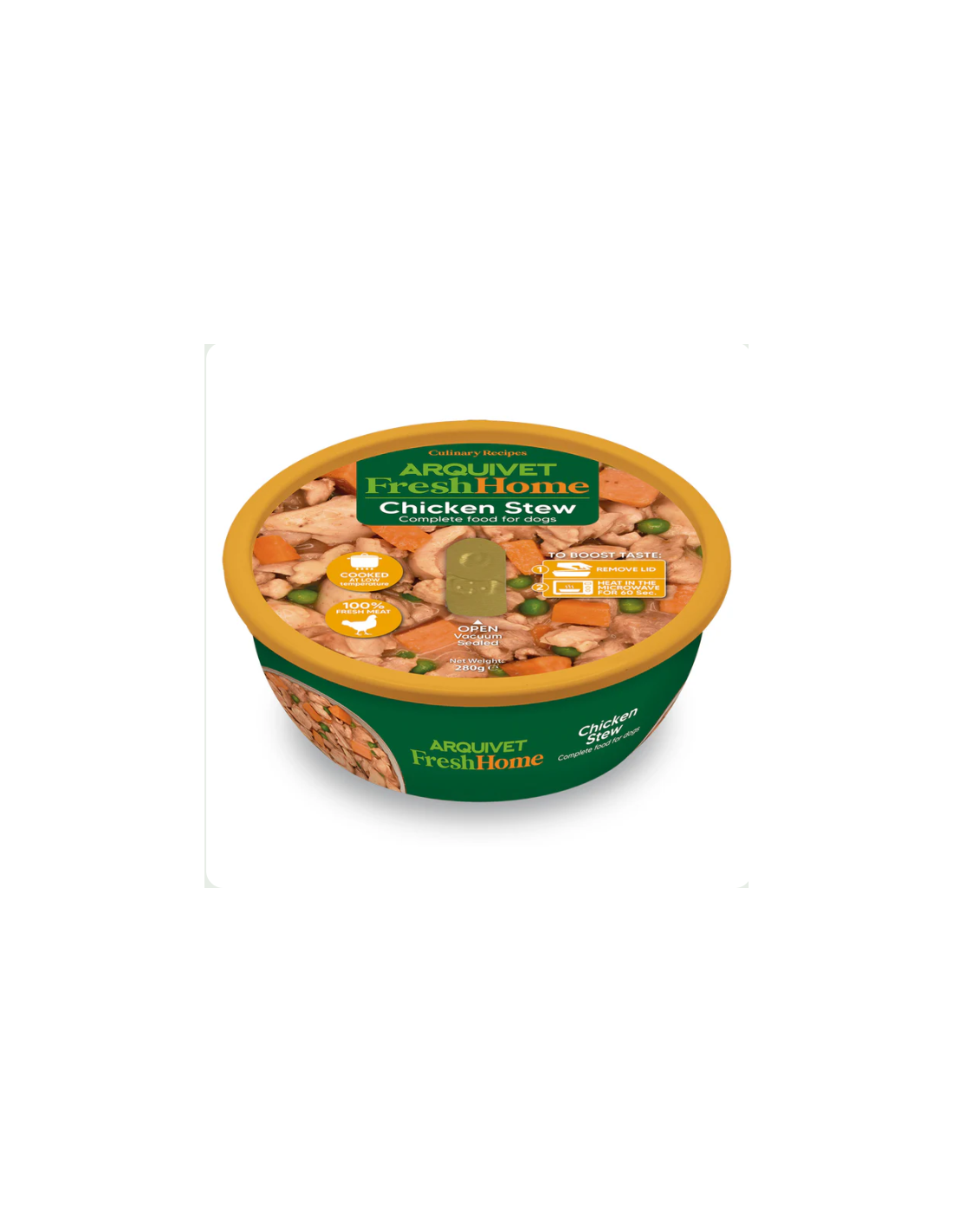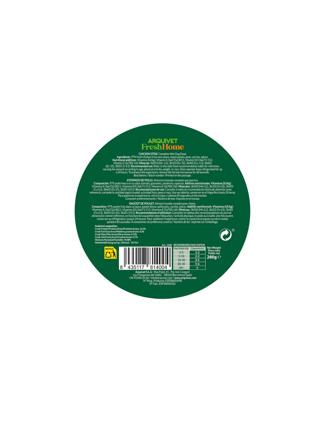 Offrez à votre chien un repas sain, savoureux et cuisiné comme à la maison. Le Ragoût de Poulet Arquivet Fresh Home est une recette 100 % naturelle, mijotée lentement pour préserver tous les nutriments, la saveur et la texture que les chiens adorent. Idéal pour tous les âges, y compris les chiens à l’estomac sensible ou souffrant d’allergies alimentaires.