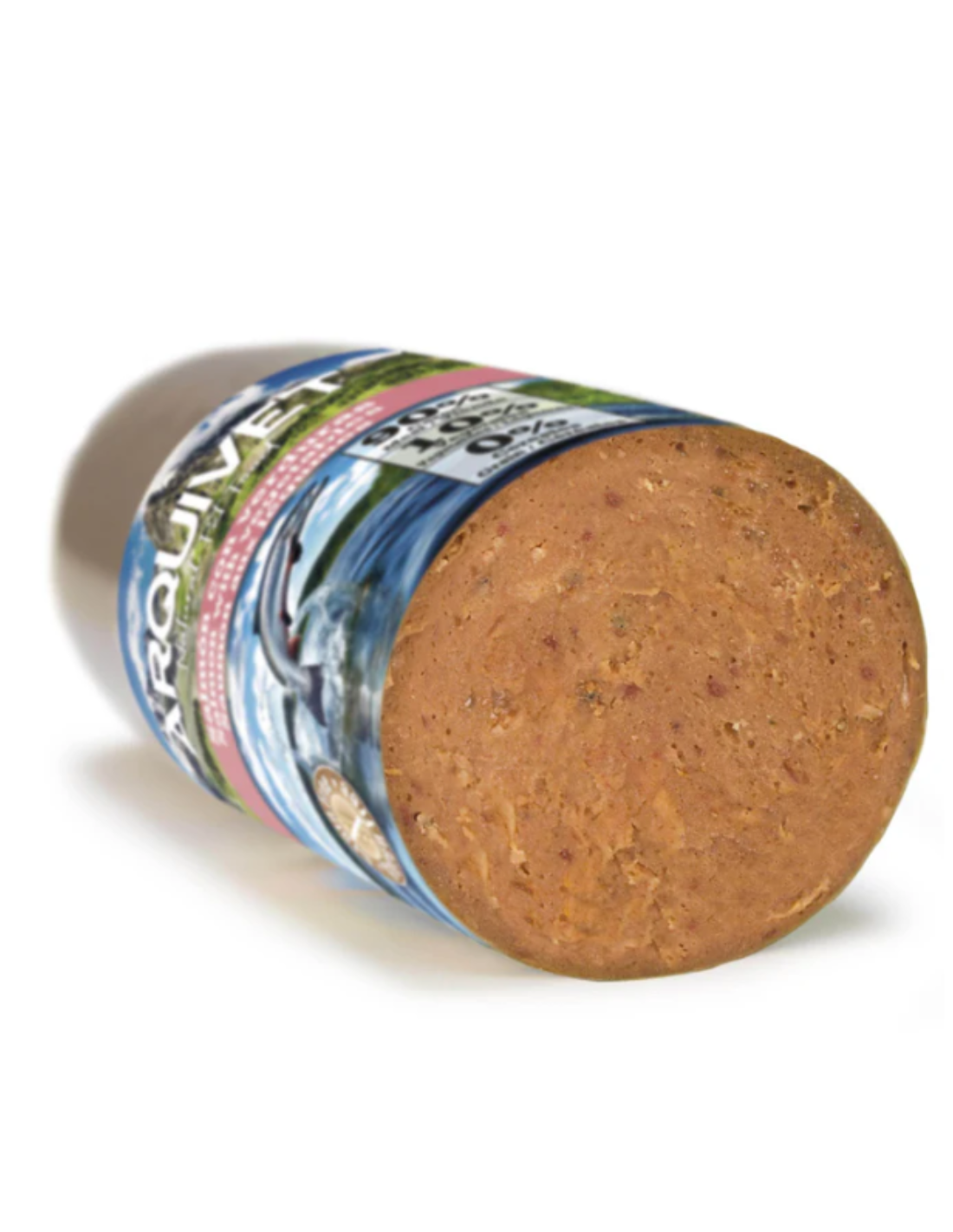 90 % Poisson, viande et dérivés (60 % saumon), légumes, pulpe de betterave, pommes de terre et épices.