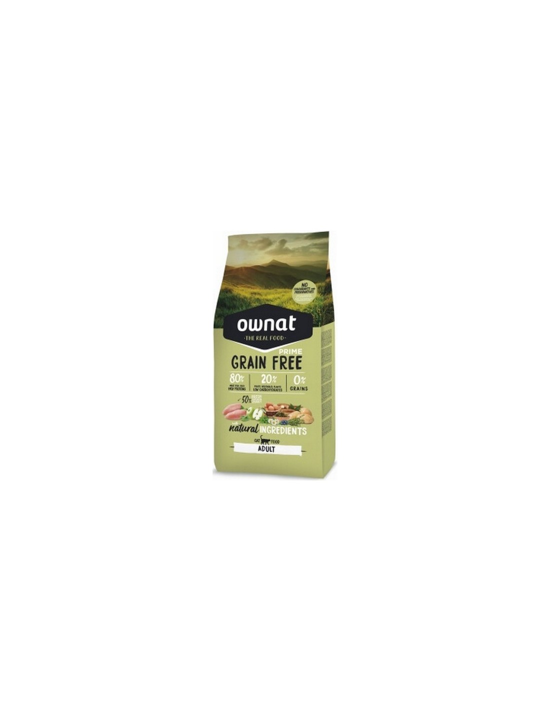 Avec plus de 50% de viande fraîche et 40% de protéines de qualité, les croquettes PRIME GRAIN FREE ADULT de la marque OWNAT sont parfaites pour répondre aux besoins des chats adultes et actifs.