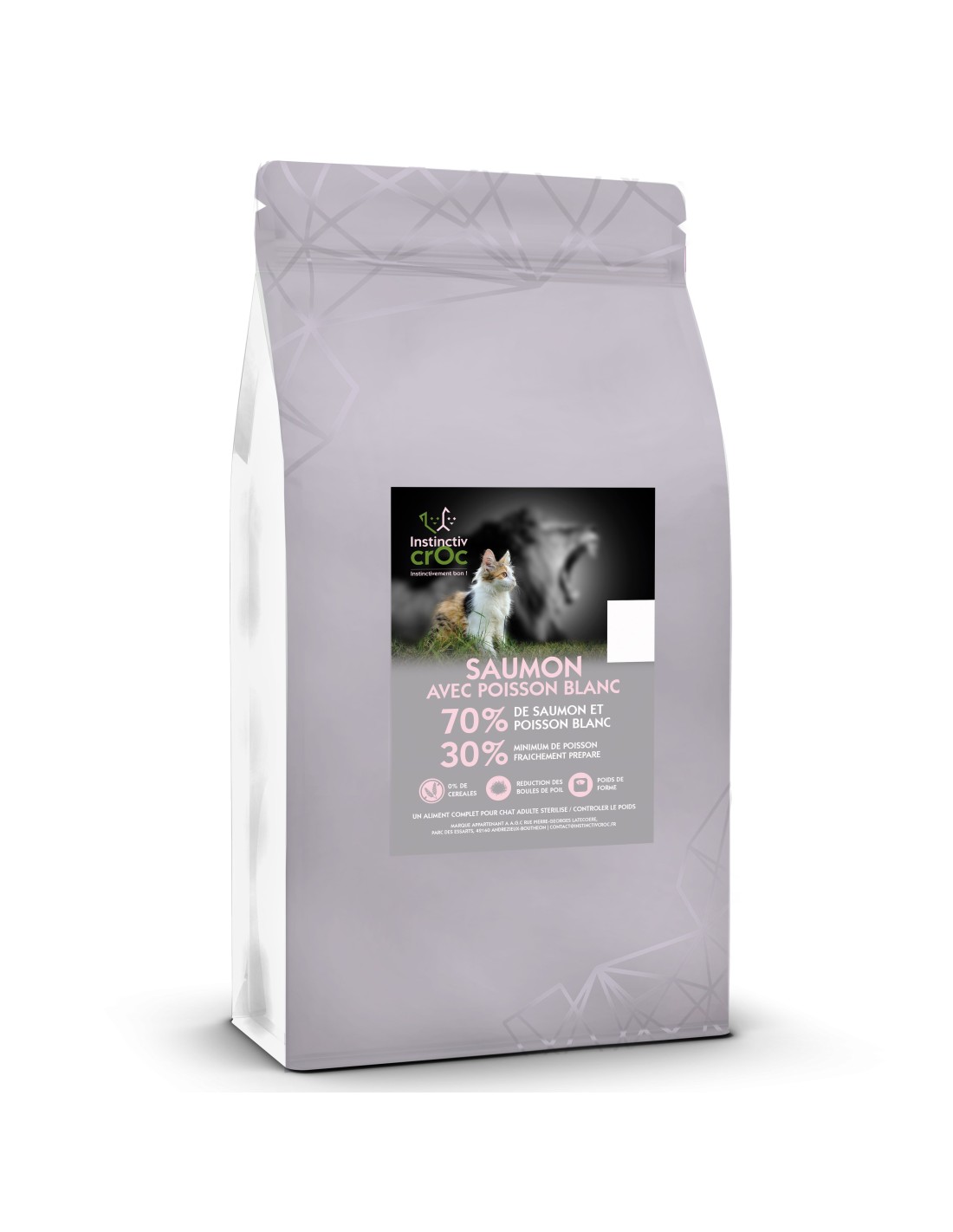 Croquettes sans céréales allégées au saumon pour chat - Instinctiv crOc
