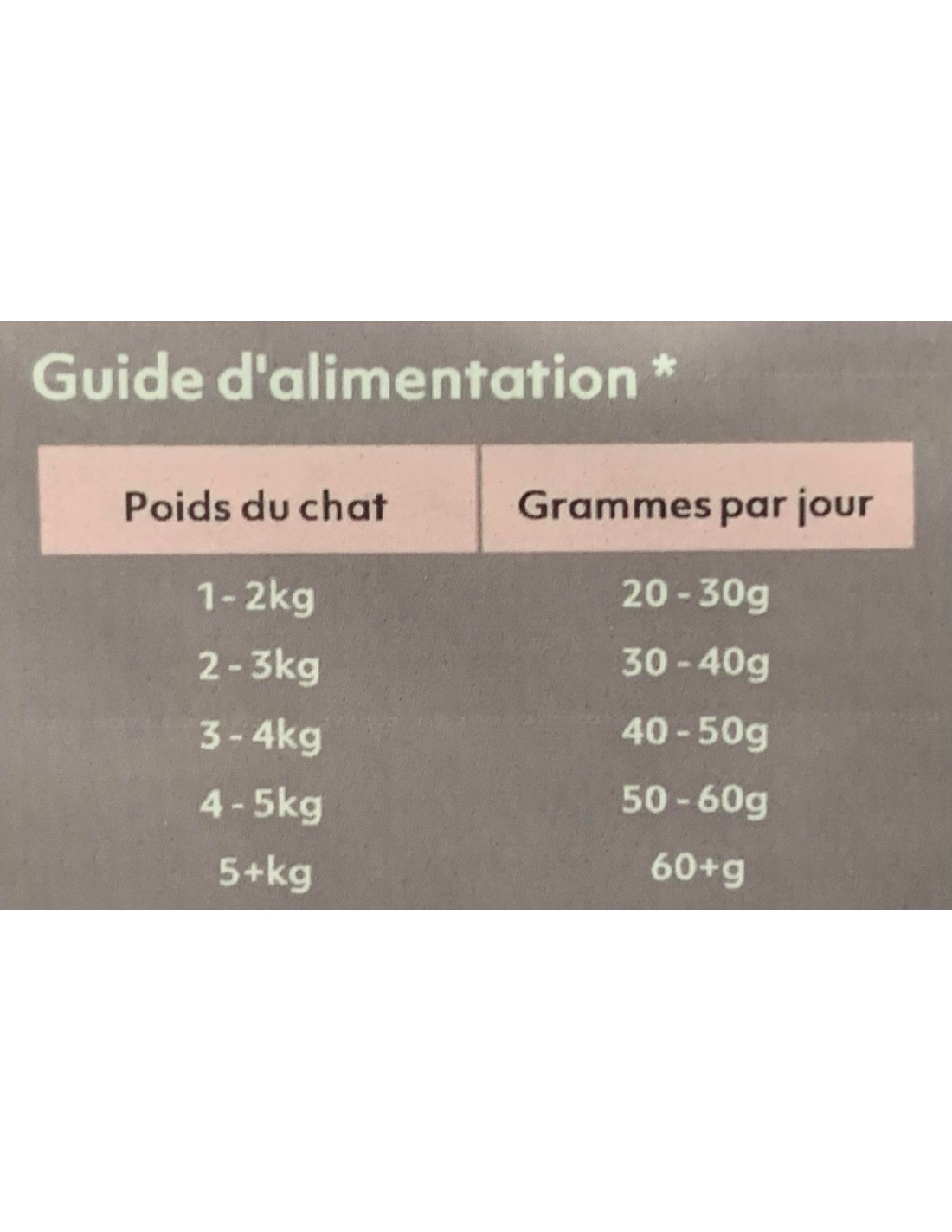 Les chats ont besoin d’une alimentation adaptée à leurs besoins physiologiques et physiques spécifiques. Notre recette est adaptée aux chats âgées, stérilisés mais aussi aux chats d'intérieur grâce au faible taux calorique de nos croquettes. Elles ont été conçu dans le but de fournir des protéines de hautes qualités avec le moins de calories possible et sans compromettre le goût.