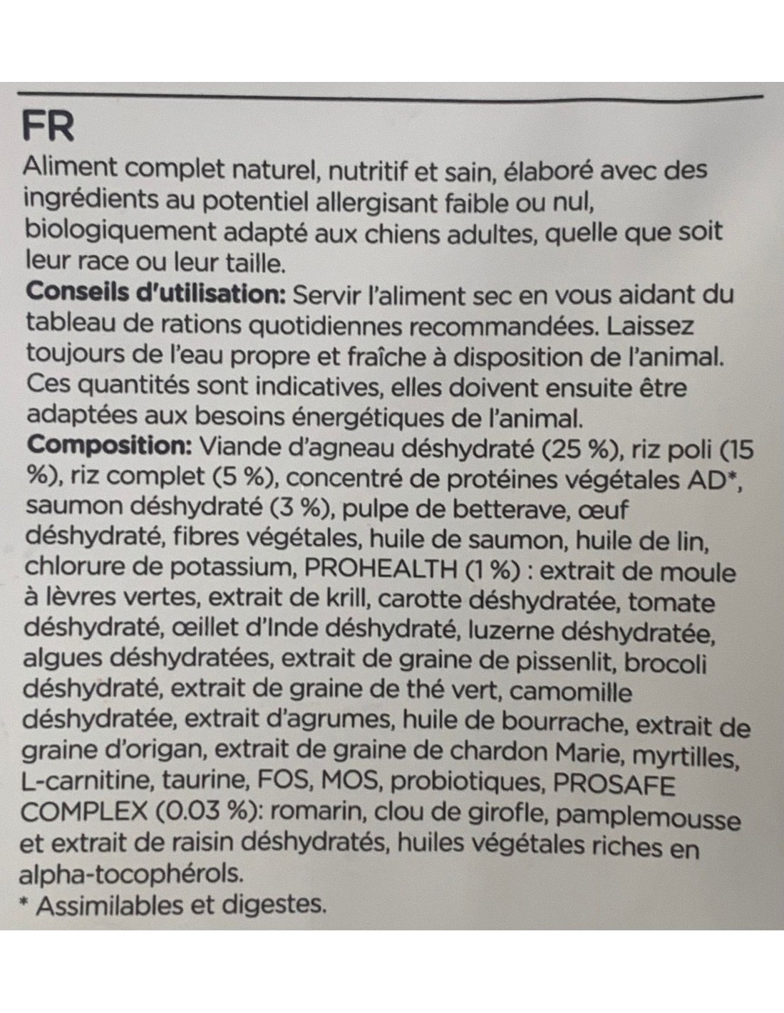 * Assimilable et digeste