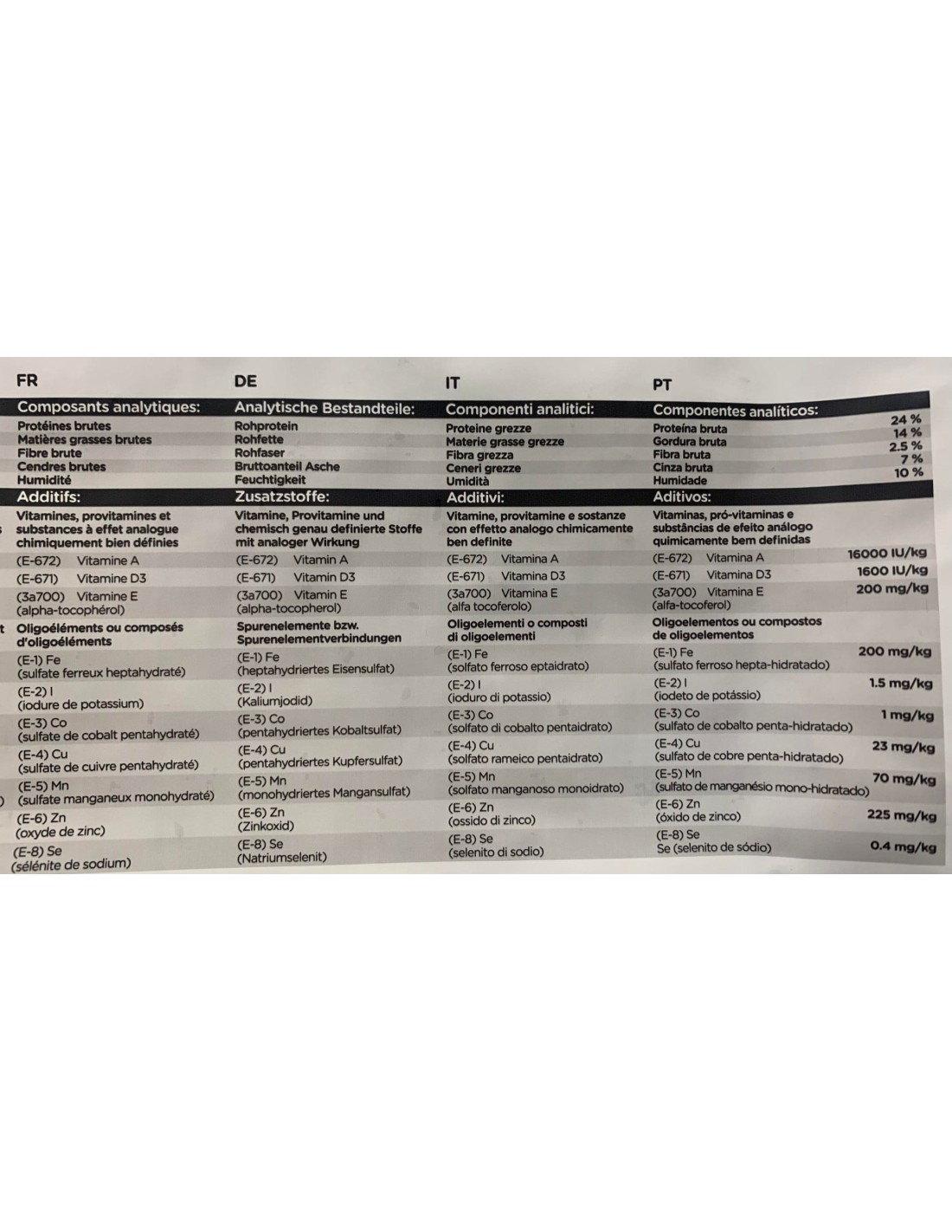 - Matières grasses brutes: 14%