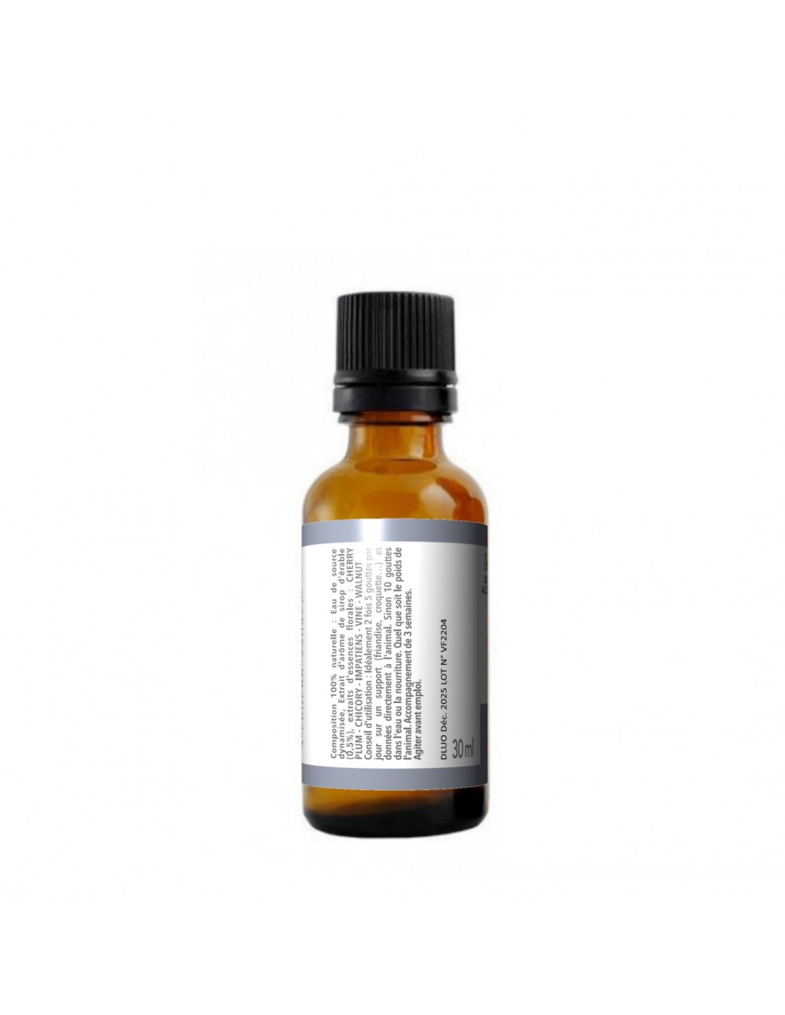 Un flacon de 30 ml est idéal pour un accompagnement de 3 semaines environ. Idéalement réparties en 2 prises de 5 gouttes, directement de la main à la gueule (friandise ou posées sur le museau).