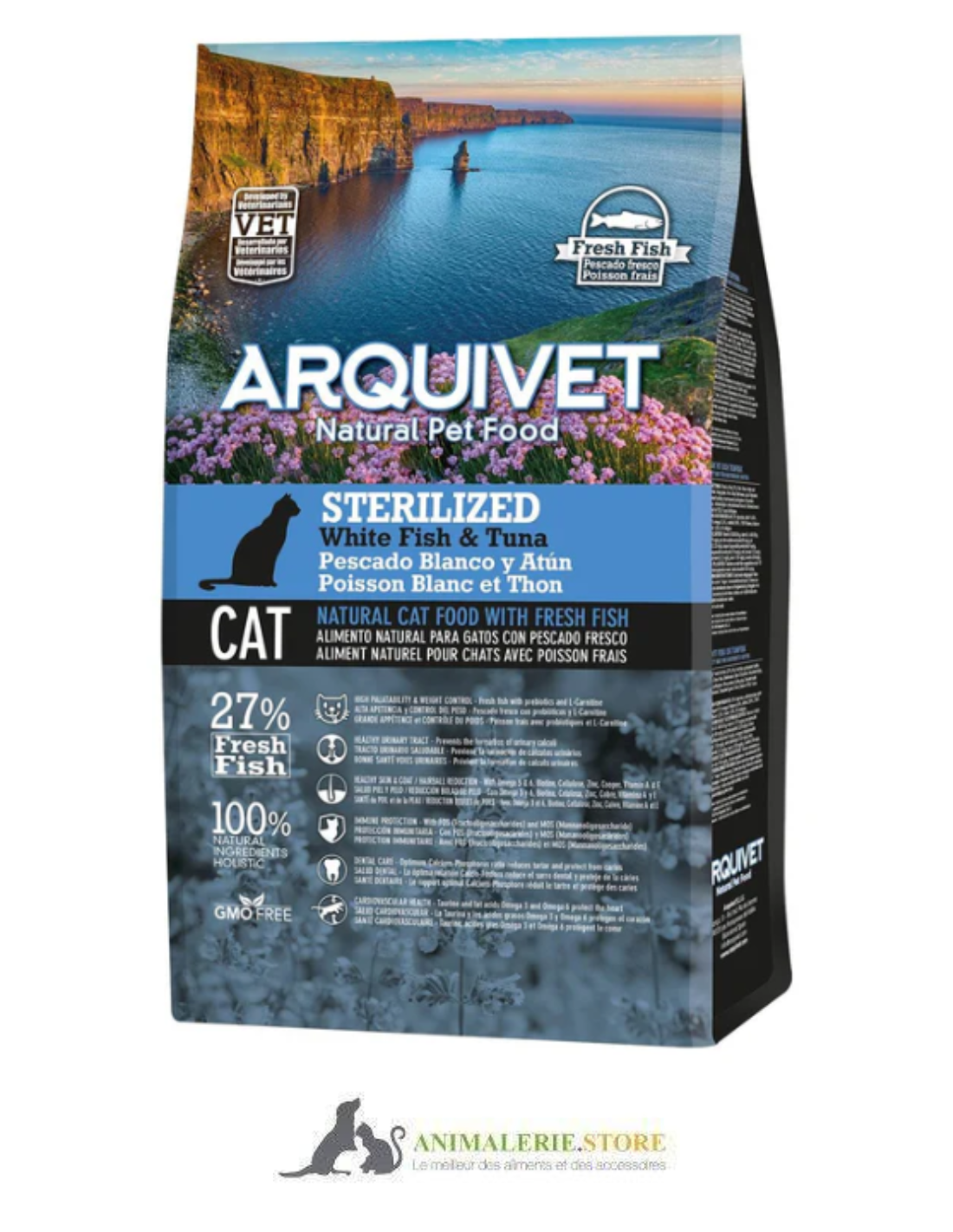 🐾 ARQUIVET – Croquettes super premium au poisson blanc & thon pour Chat adulte stérilisé/obèse 1.5 Kg