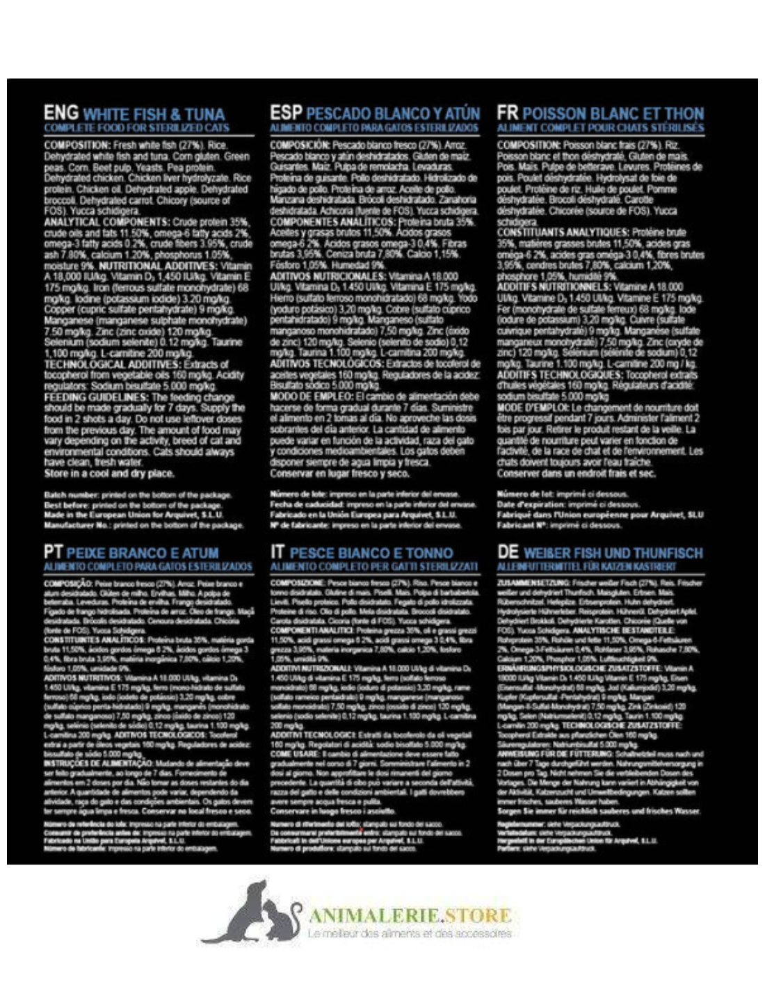 🐱 Arquivet – Chat adulte stérilisé/obèse – Poisson blanc & Thon