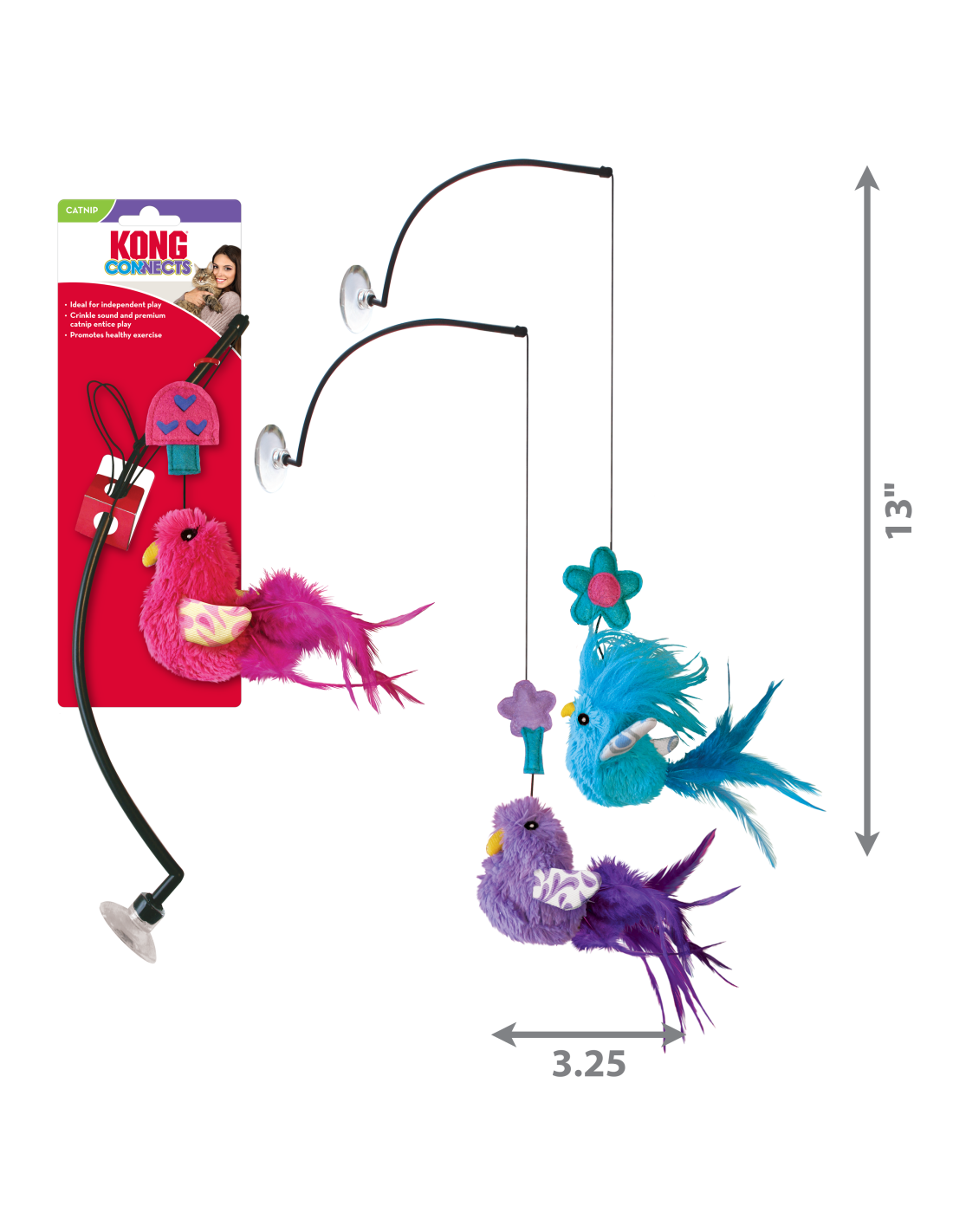 Les jouets actifs KONG Window Teaser favorisent un exercice sain et satisfont les instincts naturels de chasse, de poursuite et de capture du chat. Le jouet Window Teaser se fixe sur une surface lisse, offrant ainsi une activité ludique à votre chat, même lorsque vous n’êtes pas là pour jouer avec lui. Chaque jouet est rempli d’herbe à chat nord-américaine KONG de première qualité, possède des plumes de couleurs vives et émet un son crépitant pour toujours plus de stimulation.