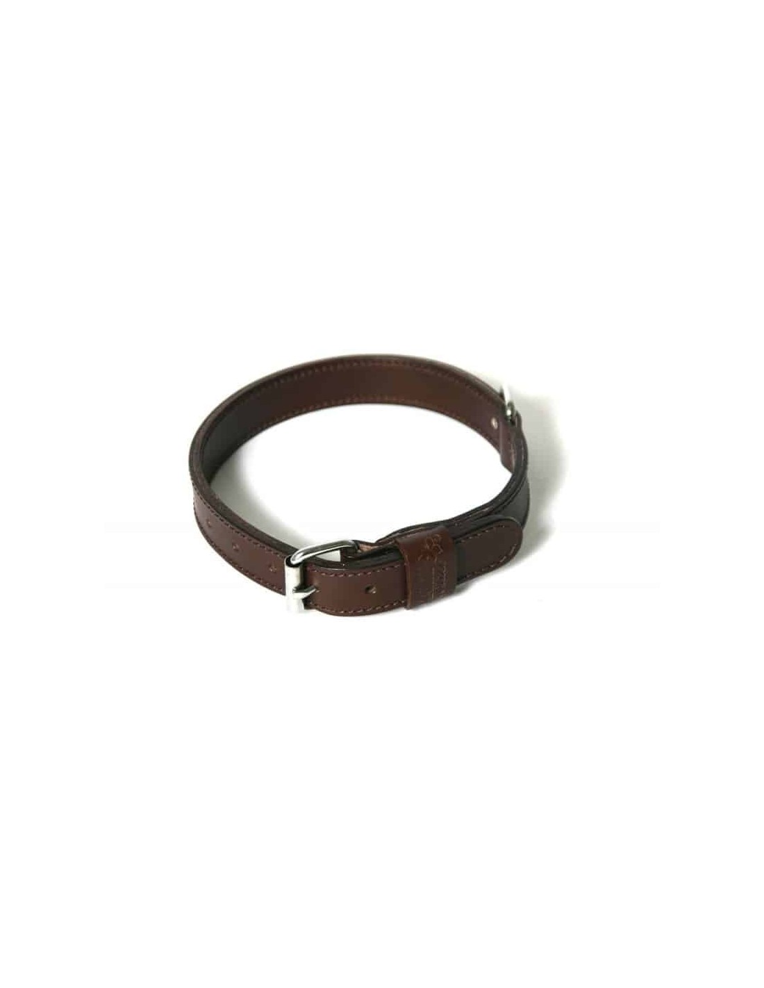 Collier double épaisseur en cuir de vachette marron pour chien de chez martin sellier.