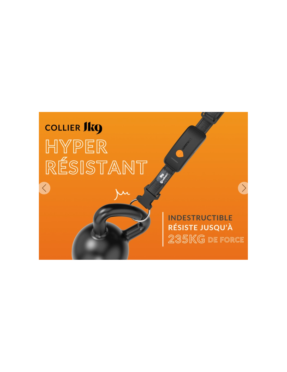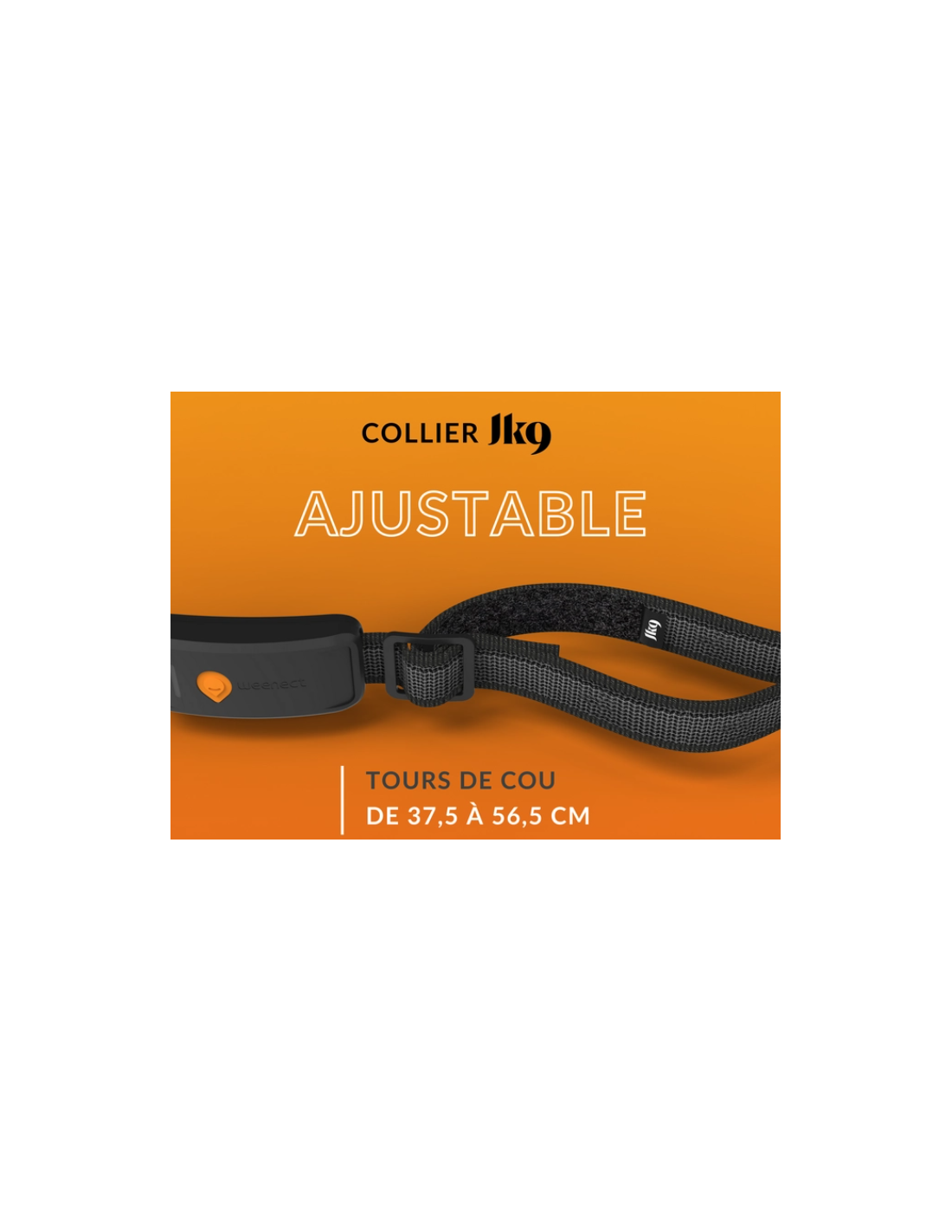 - Collier Julius-K9 inclus : ultra-résistant (résiste à 235 kg), taille ajustable (37,5 – 56,5 cm) disponible en noir ou orange