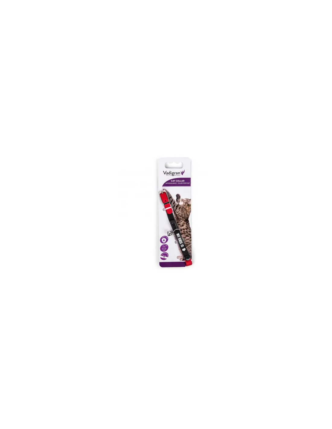 Le collier "my boss is" avec deux couleurs disponibles (rouge et noir) va plaire à votre félin.