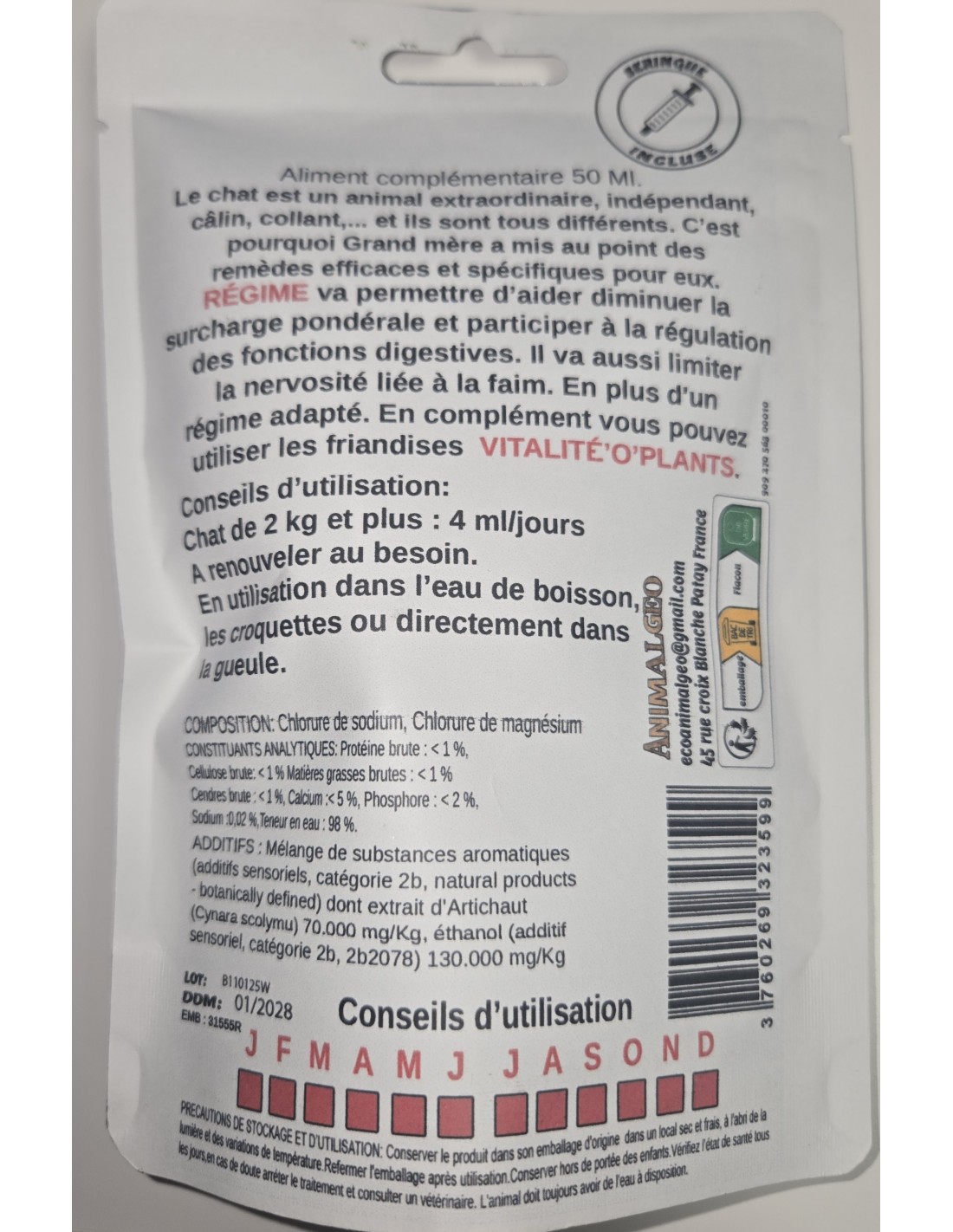 Le Régime O’Plantes est un aliment complémentaire spécialement développé pour aider les chats à limiter l’embonpoint, réduire la sensation de faim et soutenir le confort digestif. Conçu selon les « remèdes de grand-mère », ce complément utilise le pouvoir des plantes pour accompagner votre chat dans la gestion de son poids tout en douceur.