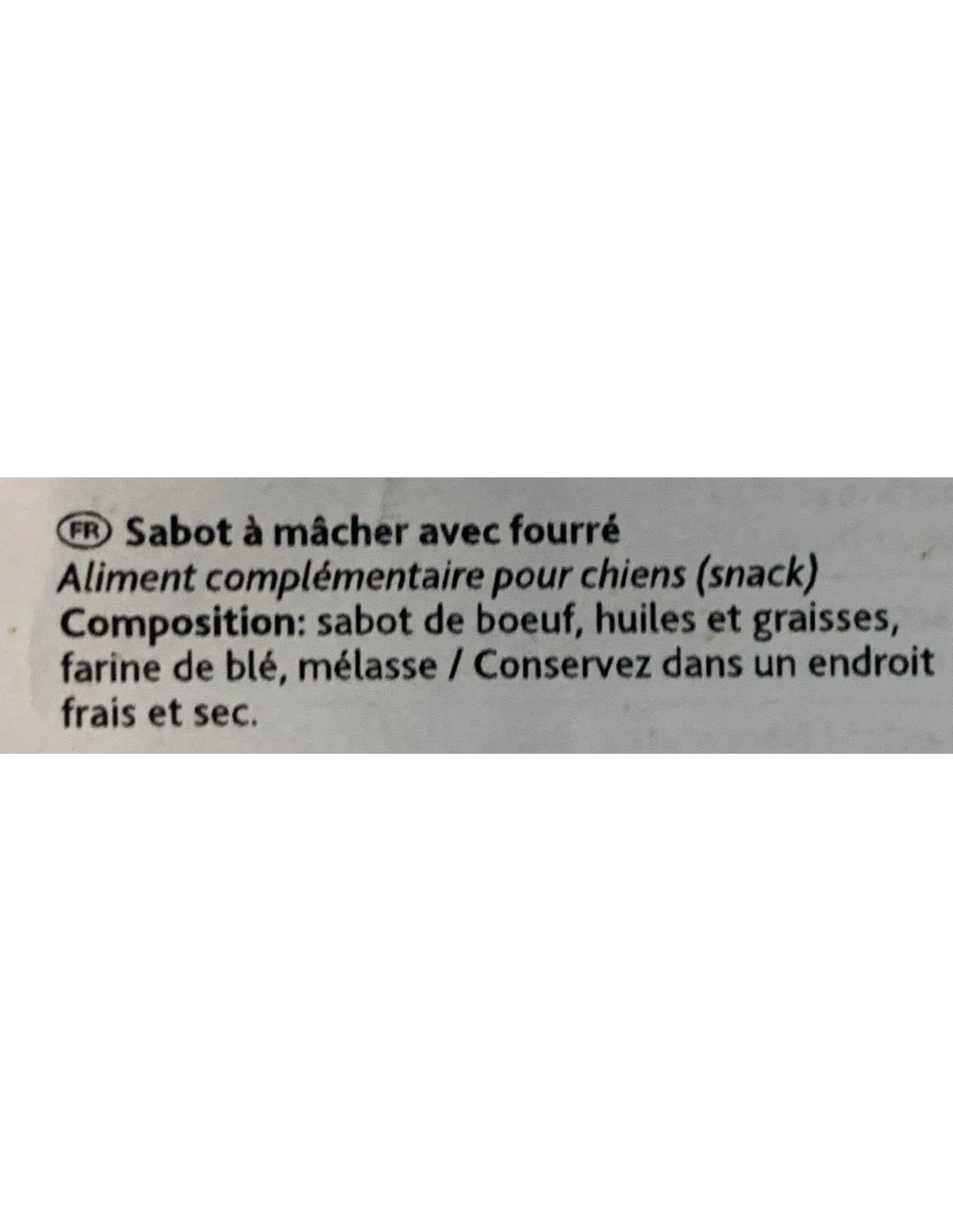 Ce sabot est une superbe friandise pour votre chien, avec son fourrage il lui assure une mastication optimale ainsi qu’un apport en protéine, acides aminés et calcium le tous dans un sabot de 70grammes environ