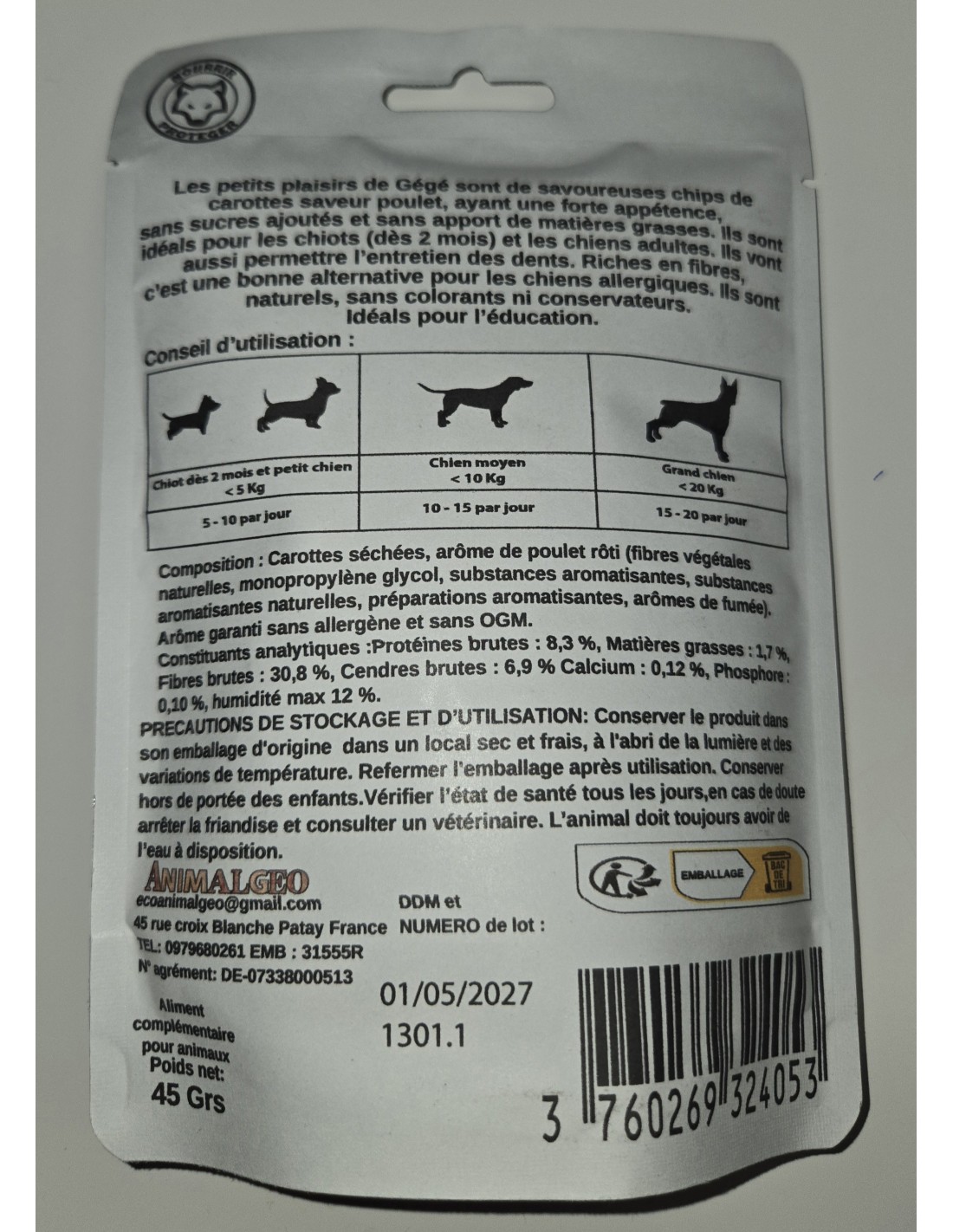 Poids sachet : 45g