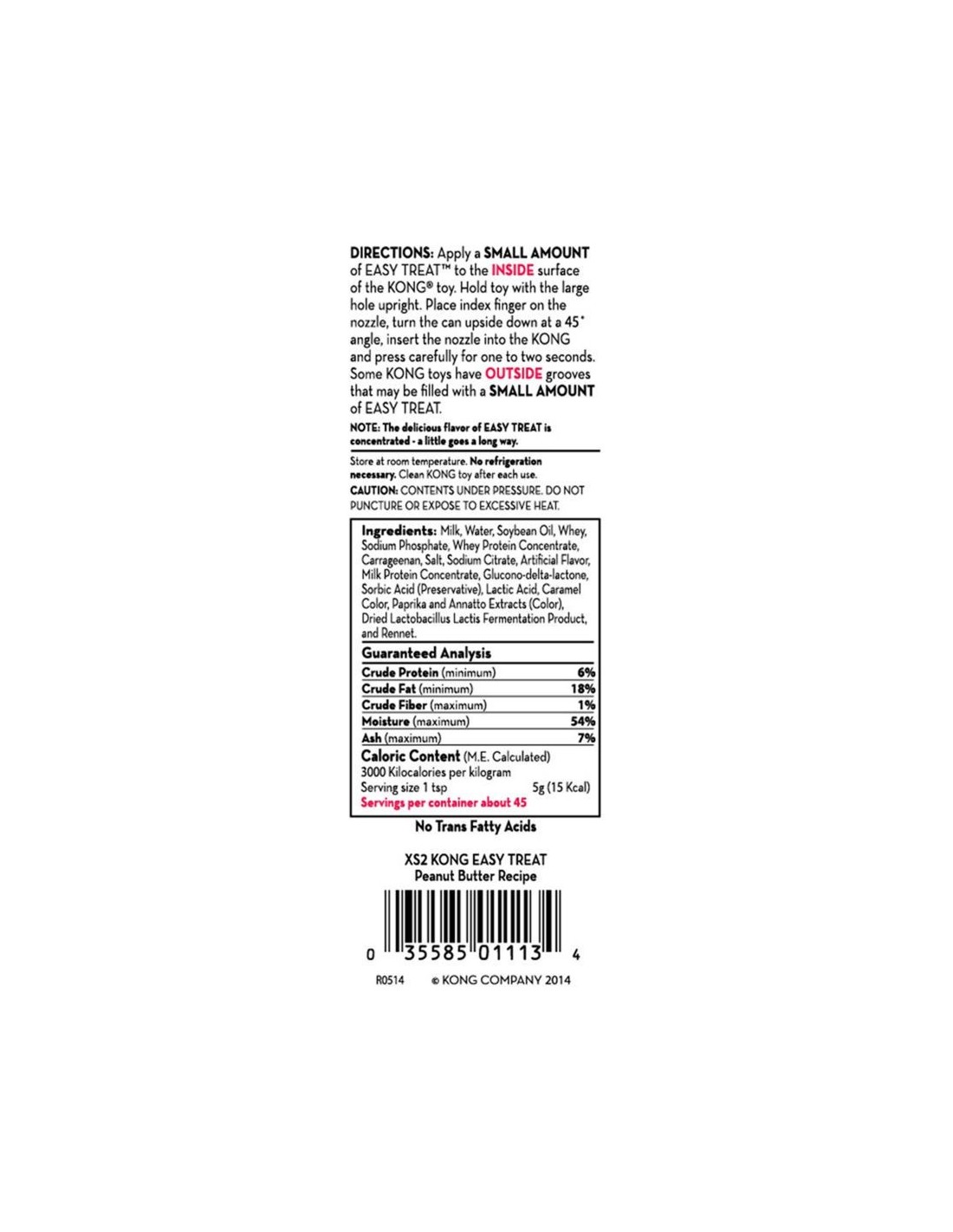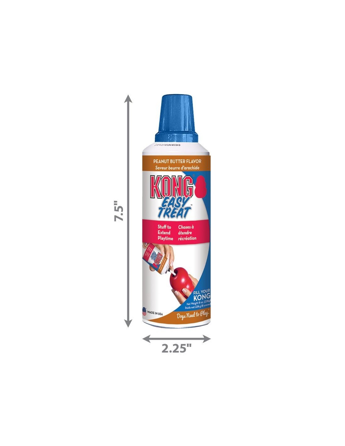 La pâte KONG Peanut Butter Easy Treat est une délicieuse friandise qui plaît à toutes sortes de chiens, et vous convaincra par son côté simple et peu salissant. Fabriquée aux États-Unis, cette friandise hautement digeste et sans acides gras trans rend les choses encore plus délicieuses lorsqu'on l'ajoute à un KONG déjà garni. Un embout de conception exclusive permet de contrôler facilement la quantité de KONG Easy Treat ajoutée, et de garnir le jouet de façon pratique et non salissante. Vous voulez que votre KONG garni dure plus longtemps ? Congelez un KONG garni, agrémenté de KONG Peanut Butter Easy Treat, pour un défi qui absorbera longtemps votre chien. Inutile de mettre au frais.