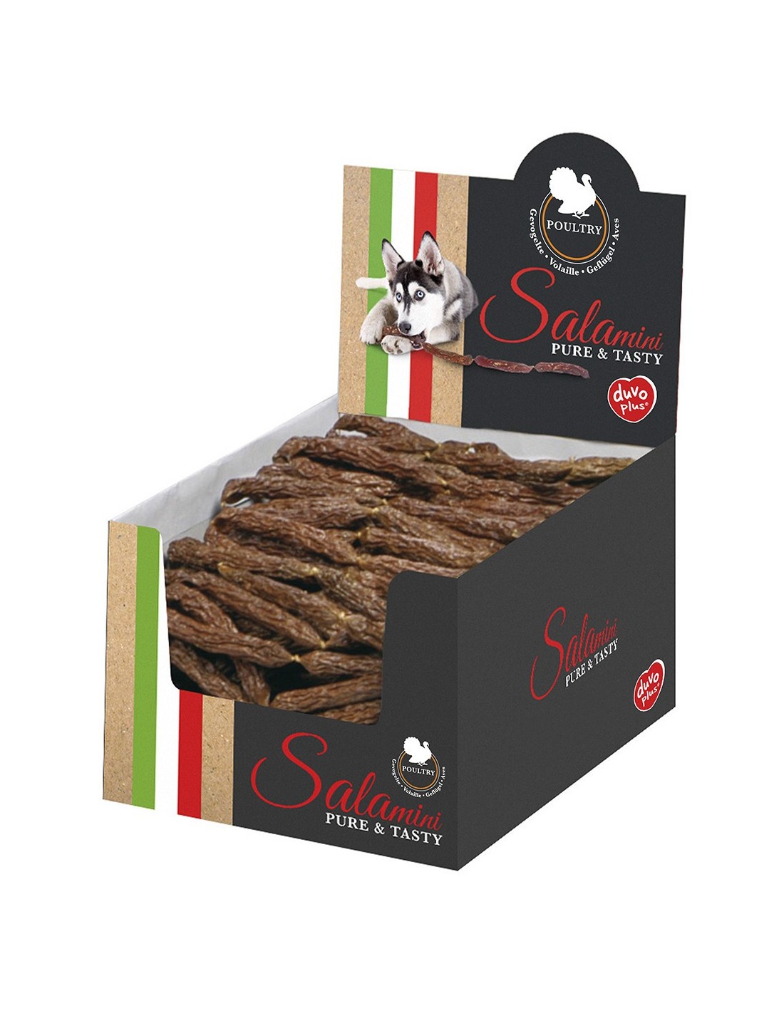 Salamini saucisse aux volaille sont de tendres et délicieuses friandises pour chiens