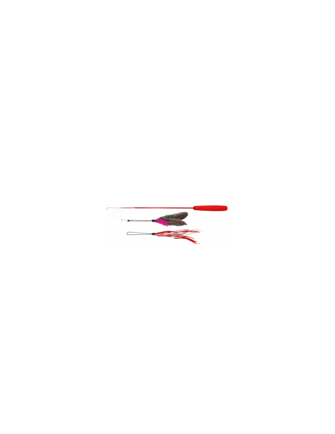 La canne à pêche télescopique, elle peut se raccourcir comme s'allonger. 2 jouets différents et interchangeable sont inclus. La tige est en fibre de verre.