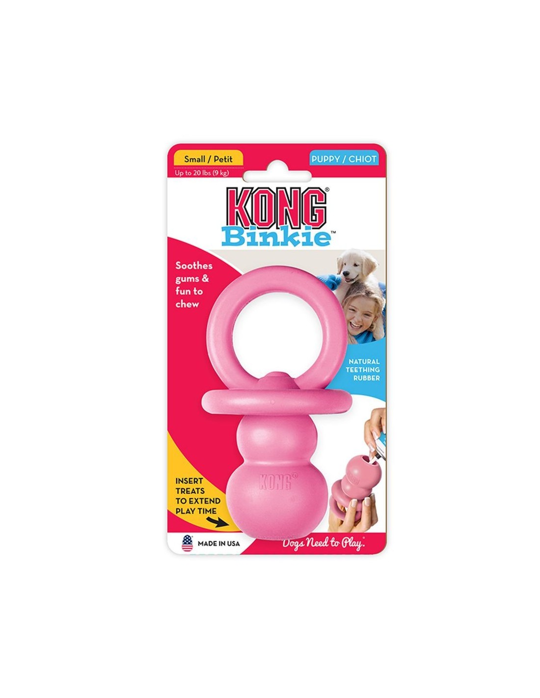 Le KONG Binkie aide les chiots à adopter un comportement de mastication approprié. Fait de caoutchouc unique KONG Classic pour chiot , ce jouet permet de satisfaire les instincts naturels de mastication tout en apaisant les dents et les gencives douloureuses. Le jouet se transforme en un distributeur de friandises stimulant dès que le centre est garni.