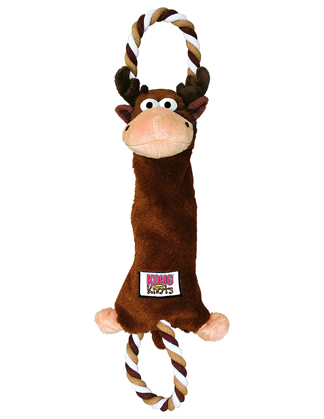 Les KONG Tugger Knots sont des jouets interactifs solides à tirer et à secouer, que les chiens adorent. Chaque jouet comporte des cordes nouées à l'intérieur pour des sensations réalistes, qui se déploient à l'extérieur pour former des poignées à tirer aux deux extrémités. Cette conception unique offre une variété de textures captivante et une résistance que les chiens adorent, avec un sifflet intégré pour encore plus de plaisir.