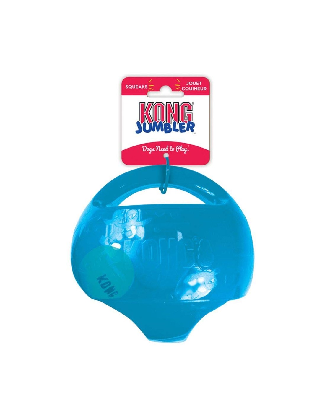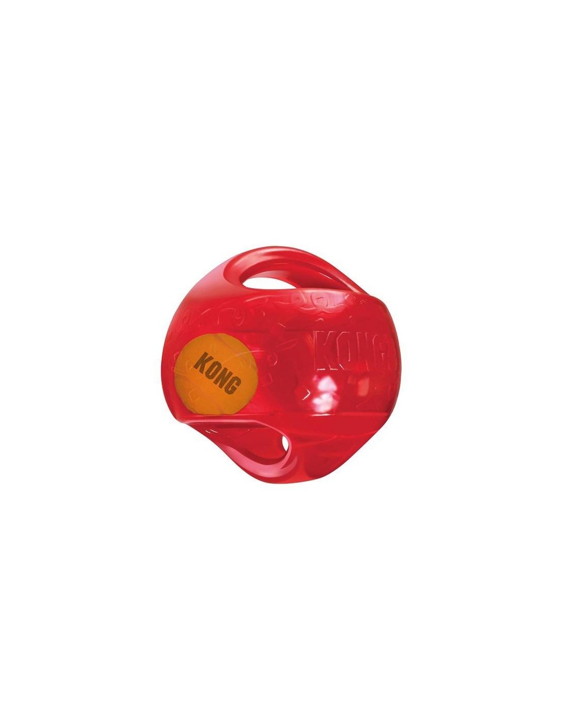 Le KONG® Jumbler est une balle deux en un pour deux fois plus de divertissement ludique et interactif. La balle de tennis à l’intérieur et le couineur puissant incitent au jeu. Les poignets du jouet permettent de le ramasser et de le secouer facilement.