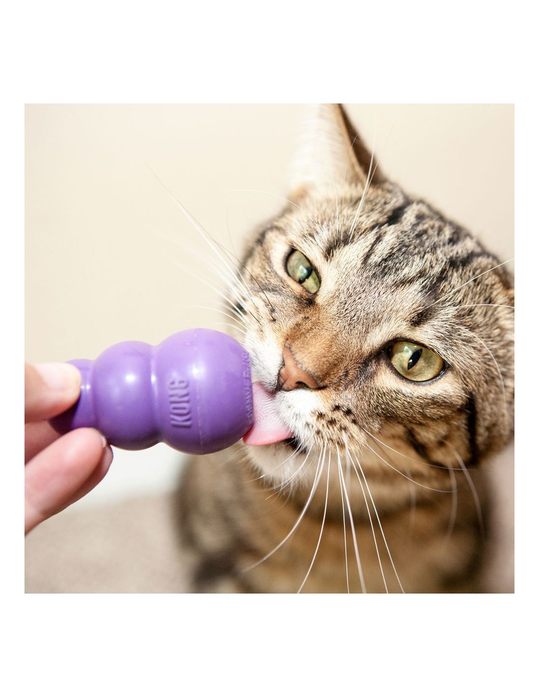 Arborant la forme mythique des produits KONG Classic, le Kitty KONG est un jouet résistant, en caoutchouc naturel, qui distribue des friandises.