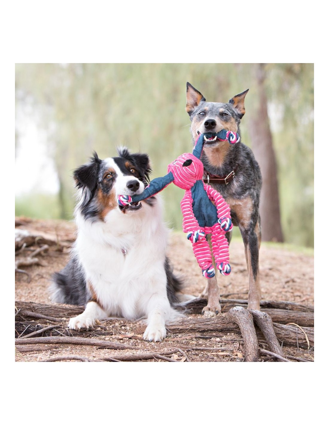 Les KONG Floppy Knots sont les derniers nés de la tribu des Knots, connue pour l’allégresse de son style qui pendouille et gigote pour toujours plus de plaisir de jeu. Les sensations réalistes de la corde nouée à l’intérieur gratifient les instincts naturels tandis que les textures variées et les sifflets incitent au jeu. Sans rembourrage pour limiter les dégâts au maximum, vous pourrez beaucoup vous amuser.