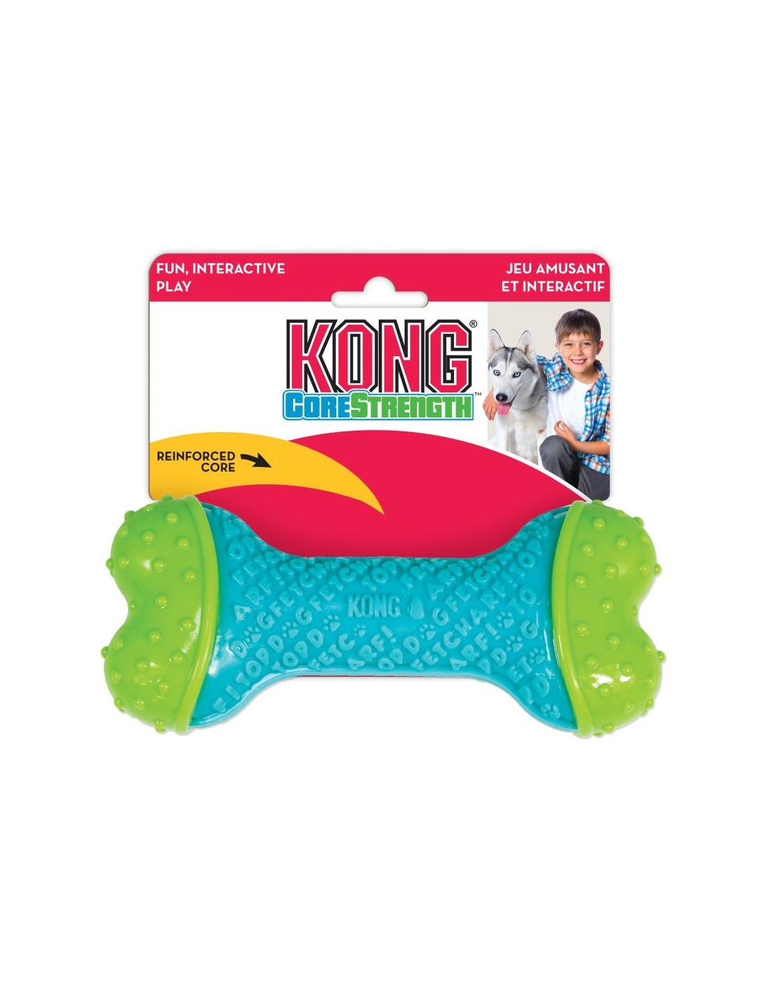 KONG CoreStrength est conçu pour durer et saura, à coup sûr, ajouter à l’excitation tout en promettant des séances de jeu prolongées. L'intérieur multicouches élaboré par KONG résiste aux longues séances de mâchonnement, tout en satisfaisant les instincts naturels de mastication du chien. Les couches renforcées de l’intérieur procurent une solidité supplémentaire, ce qui en fait un jouet idéal pour des mâchoires puissantes. Les lettres extérieures en relief contribuent au plaisir du jeu et présentent l’avantage de nettoyer les dents et les gencives. Idéal pour le jeu en solo et les séances de lancer/rapporter interactives, KONG CoreStrength saura, à coup sûr, ravir les chiens les plus joueurs.