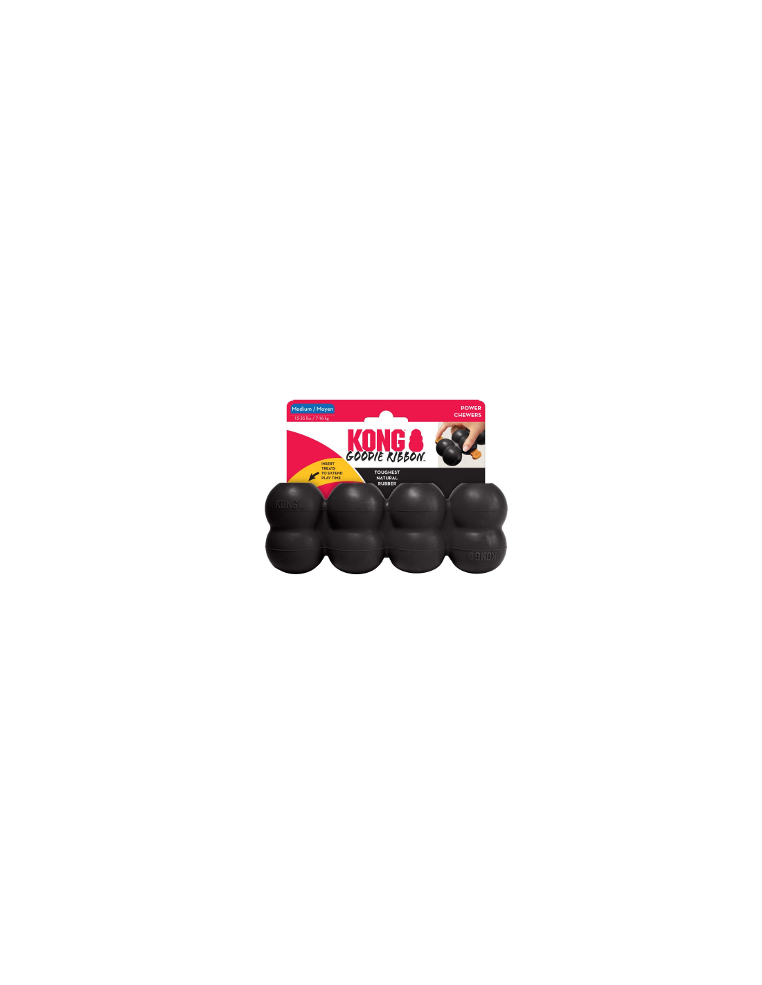 Un trésor à mastiquer ! Unique avec sa forme d'os et par sa solidité, le caoutchouc KONG Extreme Rubber satisfait et récompense les instincts naturels de mastication tout en offrant une solution durable qui amuse les chiens pendant un long moment. Garnissez les quatre cavités du jouet KONG Extreme Goodie Ribbon de friandises.