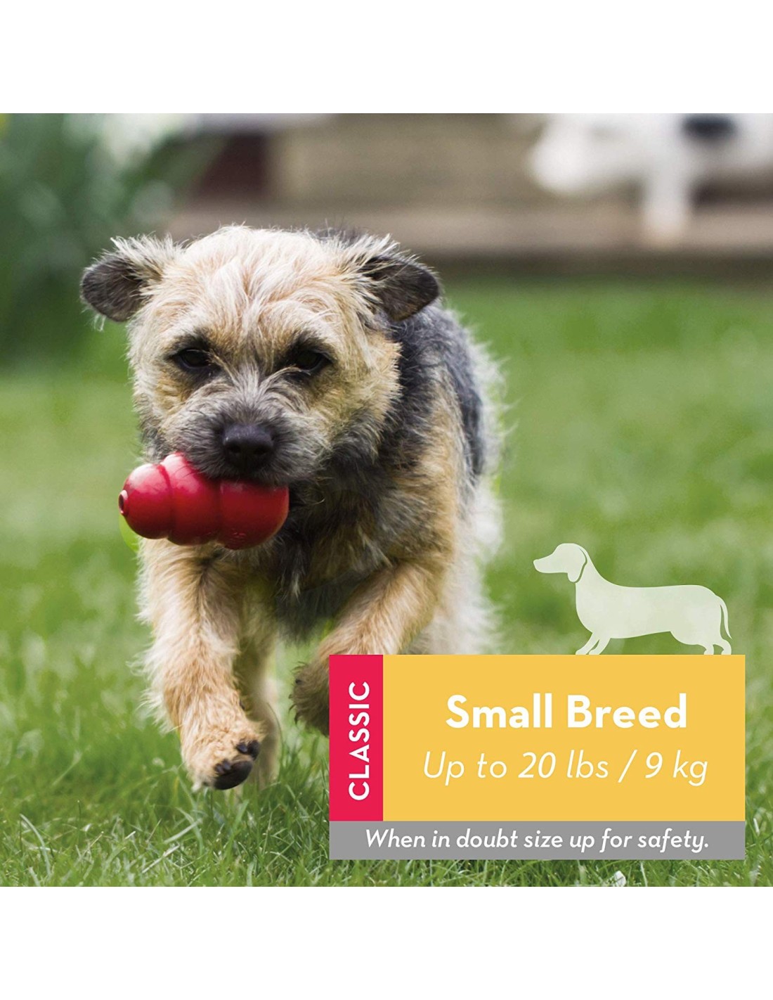 Pour chiens à mâchoires normales, caoutchouc moyen-dur. Recommandé pour la plupart des chiens adultes.
