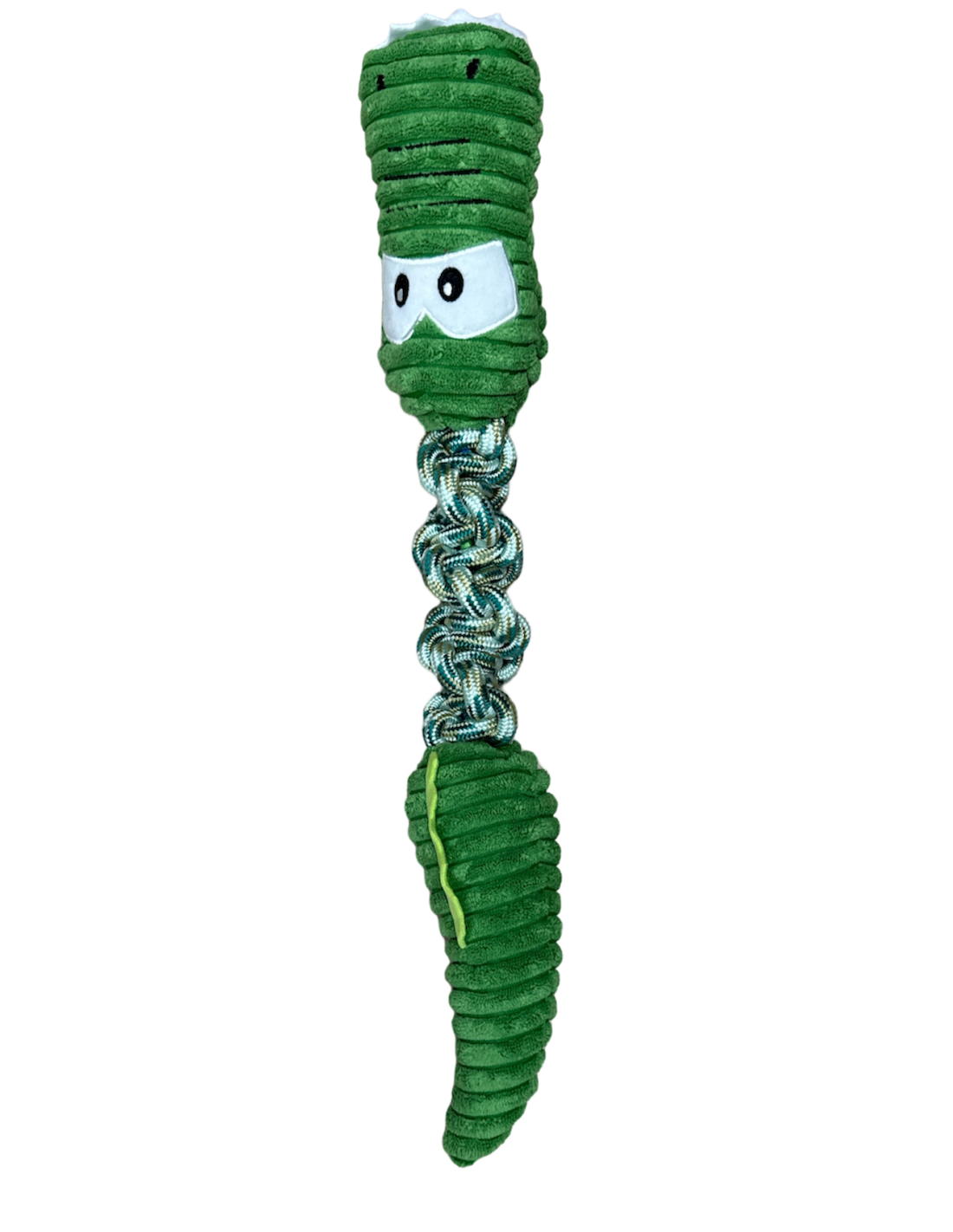 Cette peluche en forme de crocodile ravira votre chien. En plus de sa corde élastique au milieu, la queue du crocodile émet des bruits pour rendre le jeu encore plus amusant.