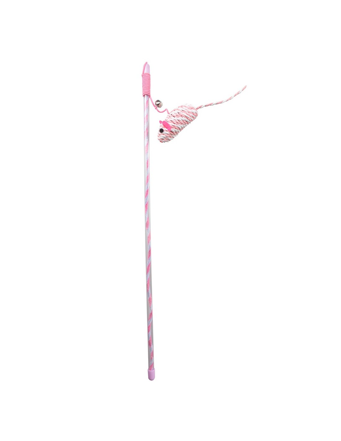 Une souris en corde de papier avec une clochette est suspendue à la canne à pêche pour plus d'amusement.