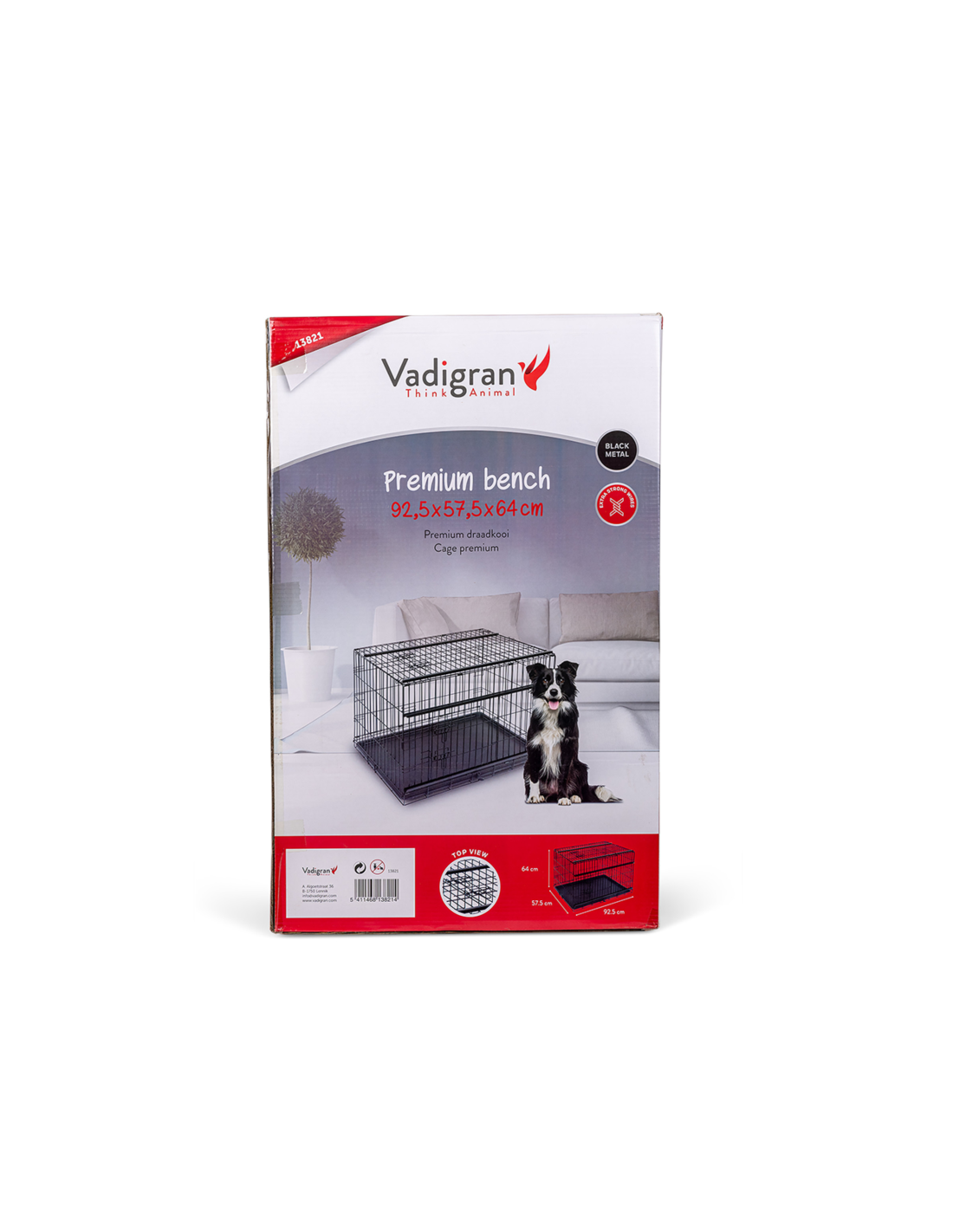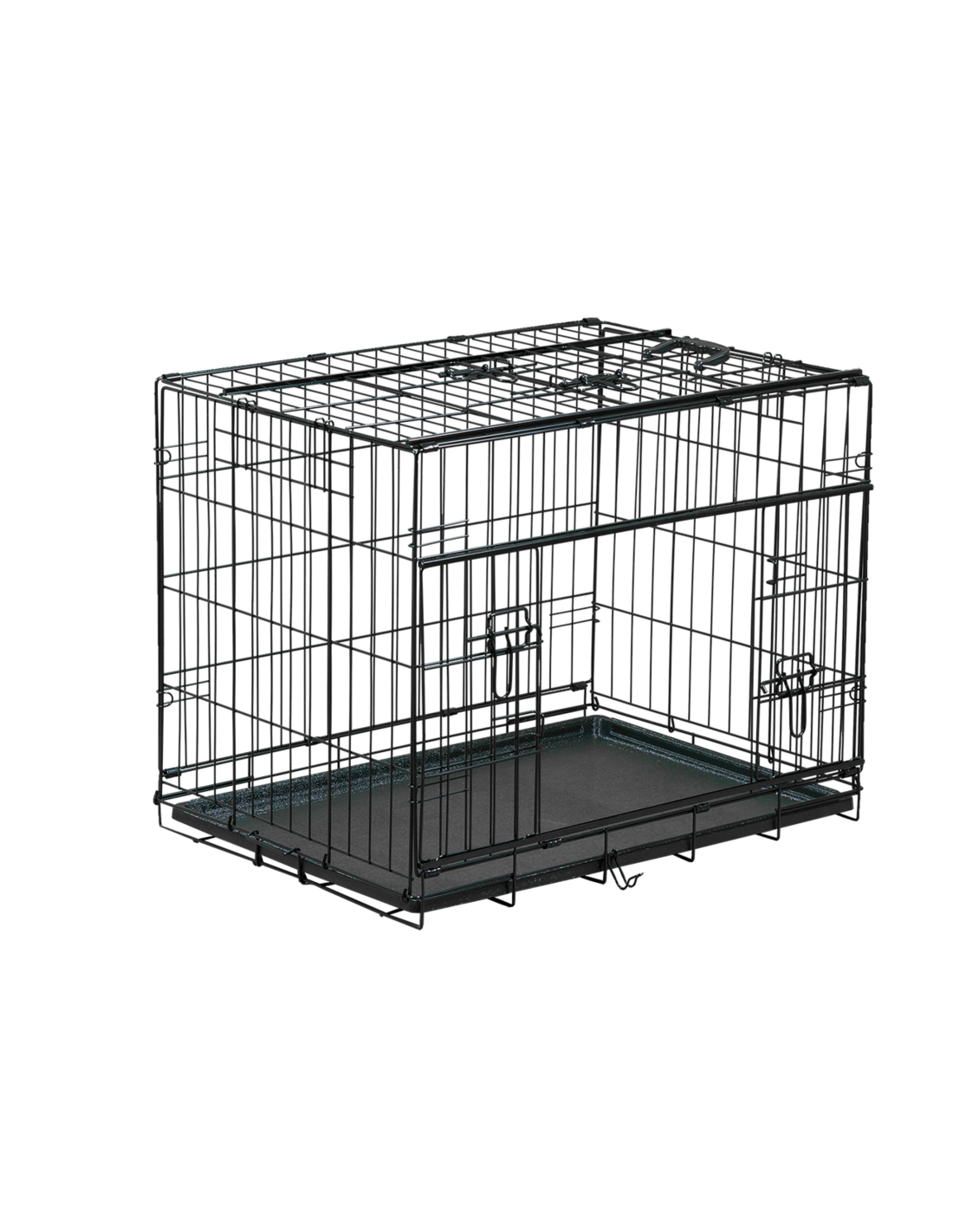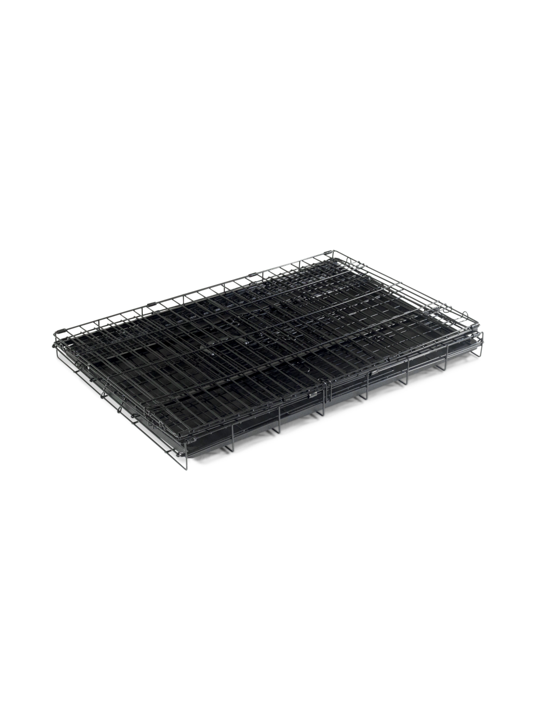 La cage de transport métallique Premium est munie de 2 portes d'accès coulissantes, l'une latérale et l'autre sur le haut de la cage. La porte du haut vous permet d'y déposer vous-même votre chien ou ses accessoires sans qu'il ne puisse s'échapper.