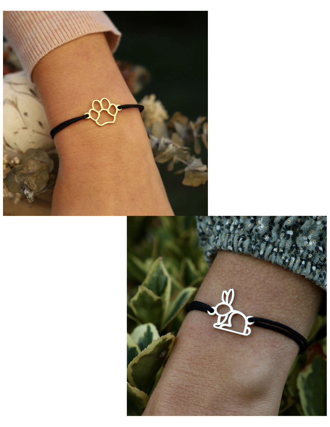 Le Bracelet Fauna Animal Totem est un bijou éthique fabriqué en France, disponible en finition or doré à l’or fin ou plaqué argent, monté sur un cordon recyclé ajustable. Élégant, durable et garanti 2 ans, il soutient activement la protection animale.