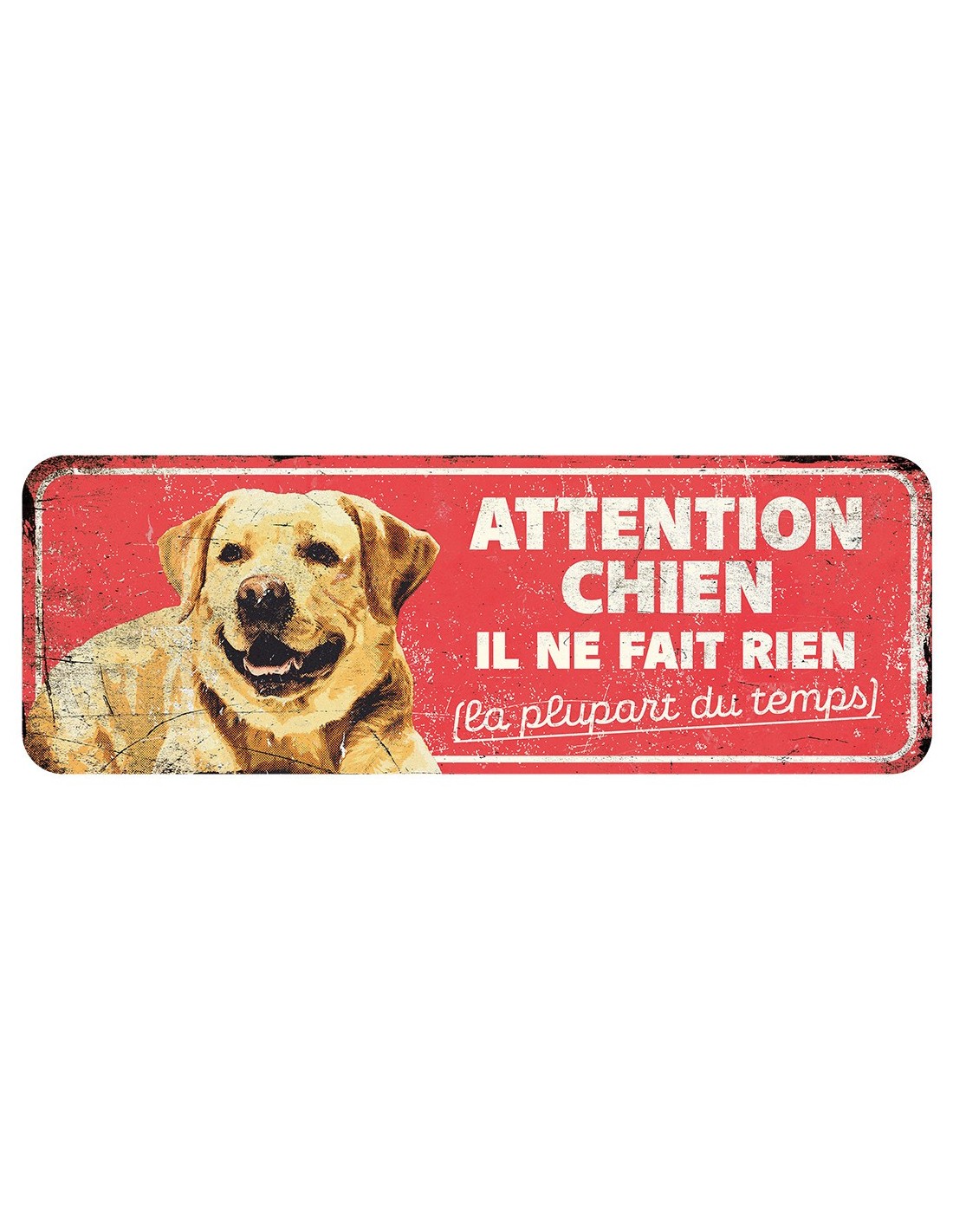 Plaque métal d'avertissement labrador humoristique en style délavé.