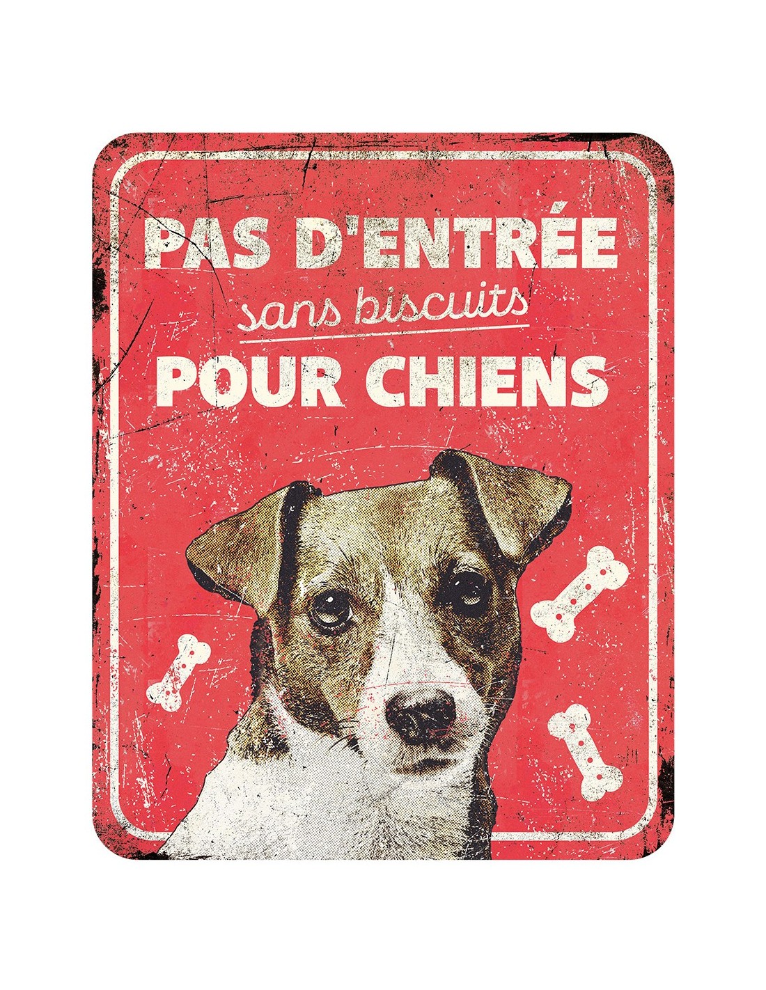 Plaque métal d'avertissement jack russel en style délavé.