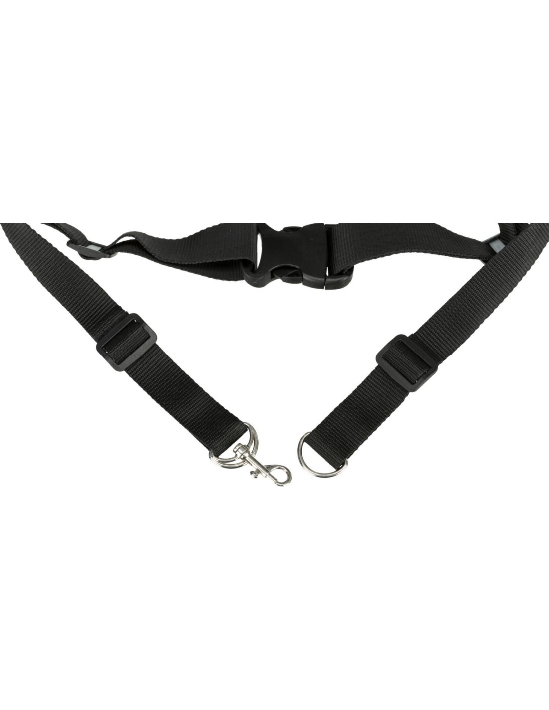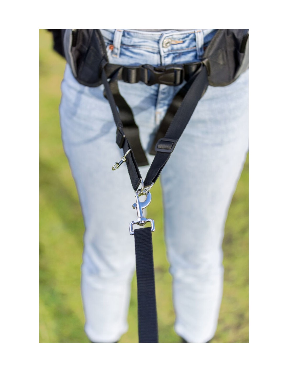 le système spécial d'acrochage de laisse(laisse non fournie) répartit l'effort de traction du chien sur la taille du maître