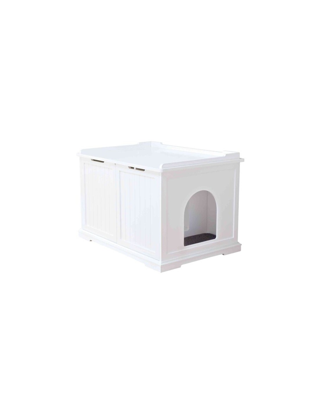 Alliant praticité et esthétisme, cette cabane vous permet de ranger le bac à litière de votre chat, lui offrant ainsi plus d'intimité tout en limitant les odeurs et les débris de litière dans votre maison. De plus, grâce à son sas et à son tapis à litière, ce meuble sera idéal pour maintenir votre espace propre et ordonné, tout en ajoutant une touche élégante à votre intérieur. Vous pouvez également l'utiliser comme espace de rangement, car le plateau supérieur peut supporter jusqu'à 90 kg.